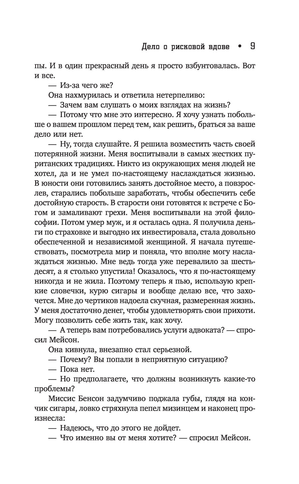 Дело о рисковой вдове. Когда пожилая вдова Матильда Бенсон обращается за помощью к Перри Мейсону, ее просьба кажется довольно простой: нужно отправиться на корабль, переоборудованный в казино, и выкупить долговые расписки ее племянницы. Но когда адвокат оказывается на корабле, он находит его владельца мертвым...