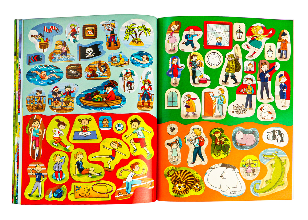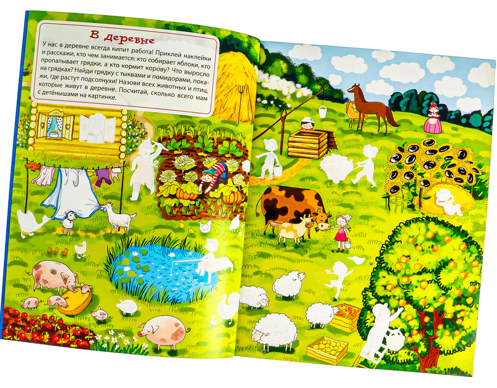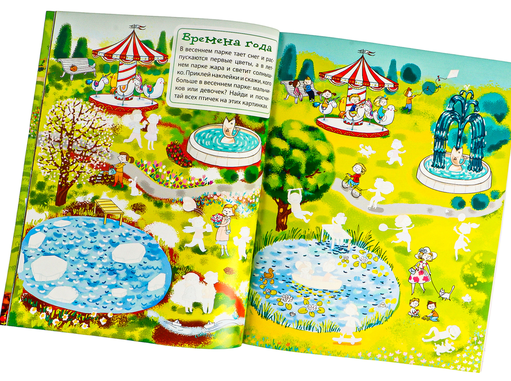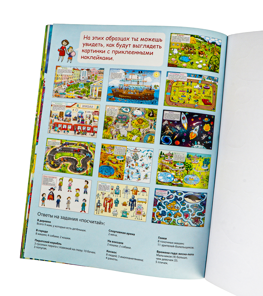 Купила ребенку возрастом 1,5: рассматриваем с удовольствием. Я комментирую то, что происходит на картинках, а потом вместе клеим наклейки и ищем знакомые предметы. Кстати, книга для мальчиков интереснее, чем для девочек.