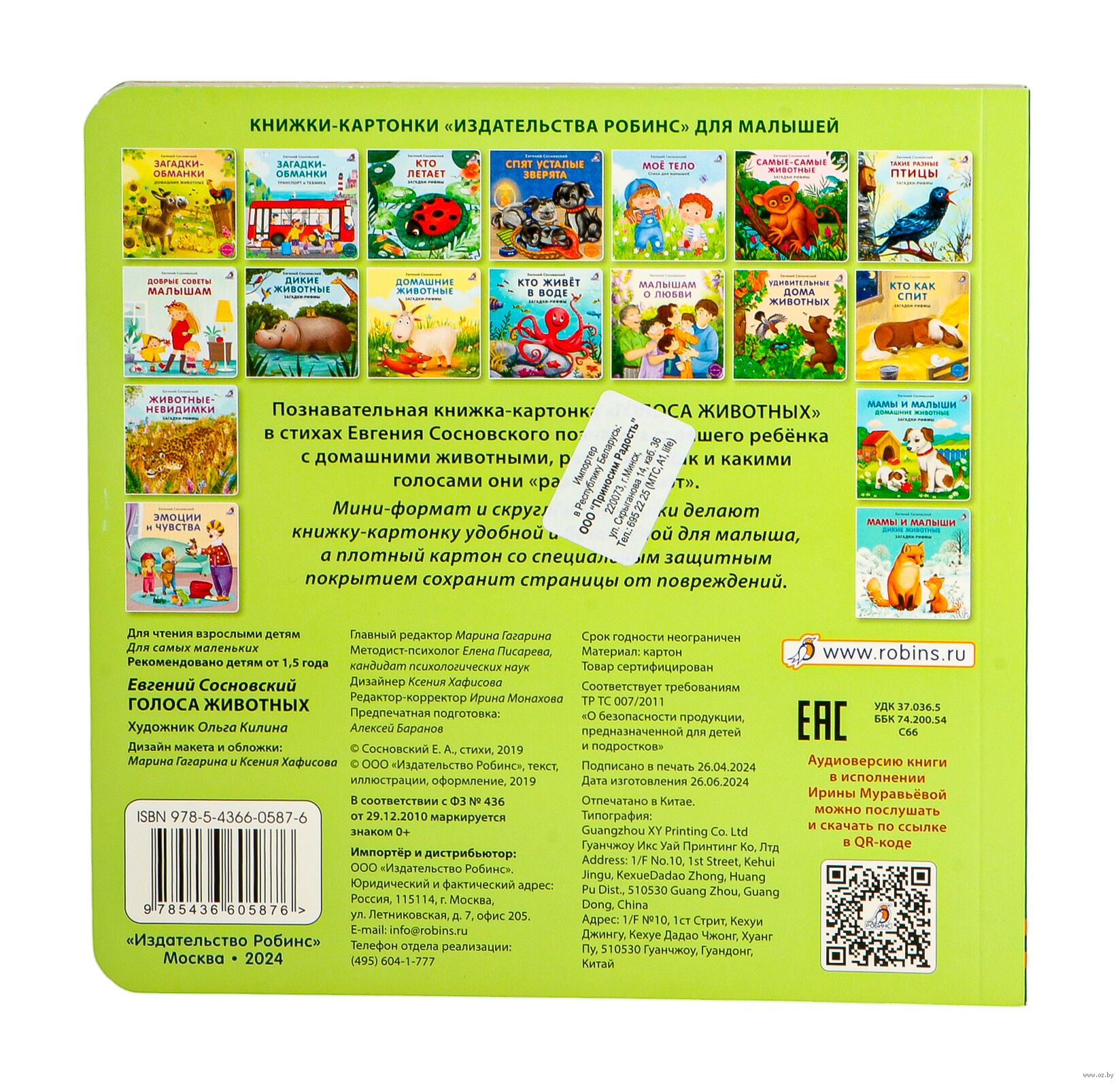 Книжка-картонка "Голос животных" в стихах Евгения Сосновского познакомит вашего ребёнка с домашними животными, расскажет, как и какими голосами они "разговаривают".