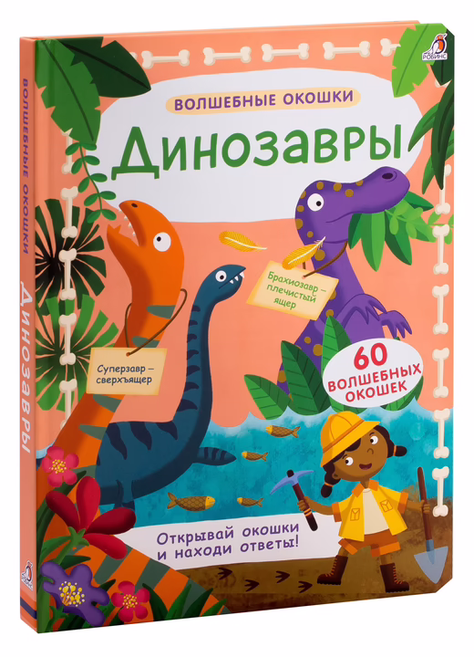 Отправляйся на прогулку в доисторические времена вместе с этой книгой. Разглядывай картинки, открой 60 волшебных окошек и узнай интересные факты: как и когда жили динозавры, сколько всего видов динозавров насчитывают ученые, что такое мезозойская эра и многое другое. Найди своего любимого динозавра на страницах этой книги.