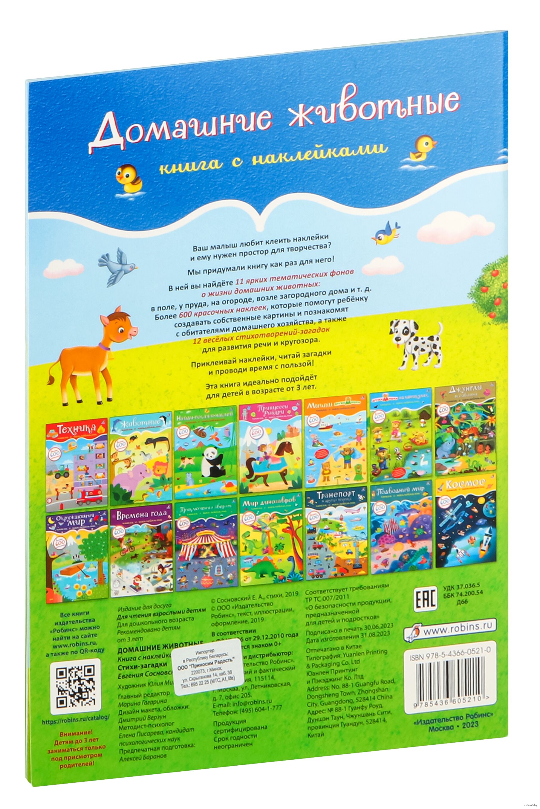 Более 600 красочных наклеек, которые помогут ребенку создавать собственные картины и познакомят с обитателями домашнего хозяйства, а также 12 веселых стихов-загадок для развития речи и кругозора. Приклеивайте наклейки, читайте загадки и проводите время с пользой!