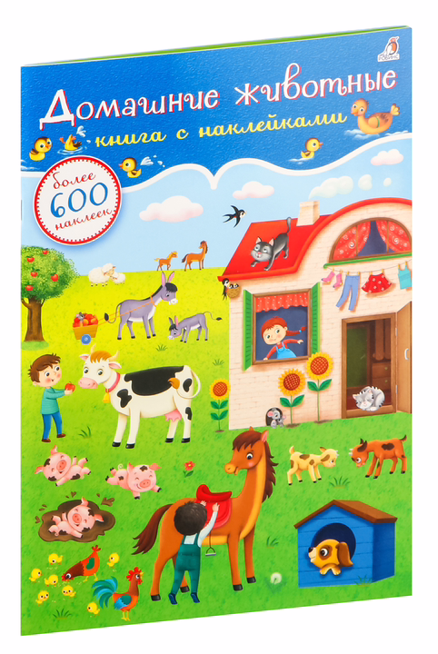 "600 наклеек. Домашние животные" – это обучающая книга для детей от 3-х лет с вкладышами-наклейками внутри.
