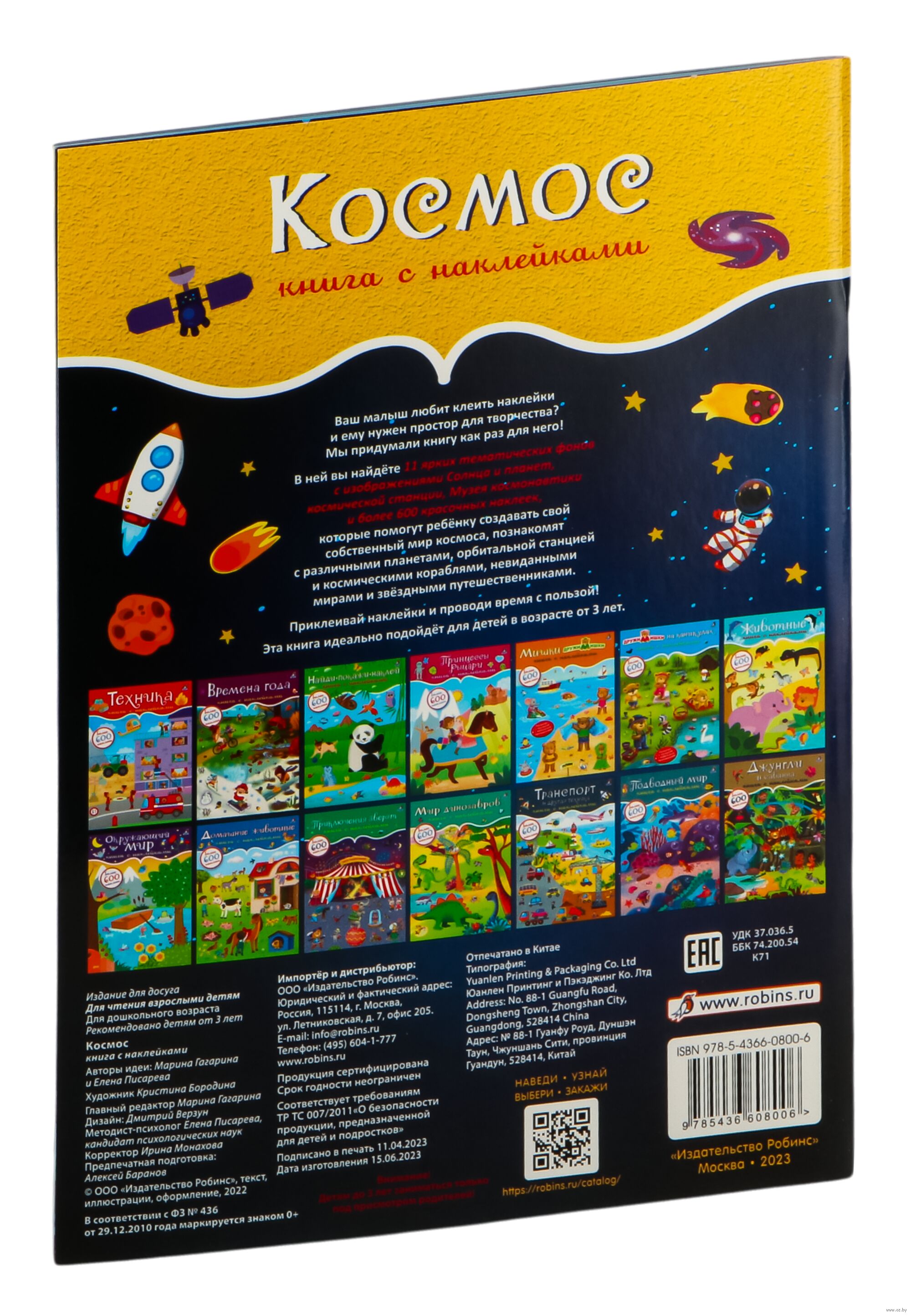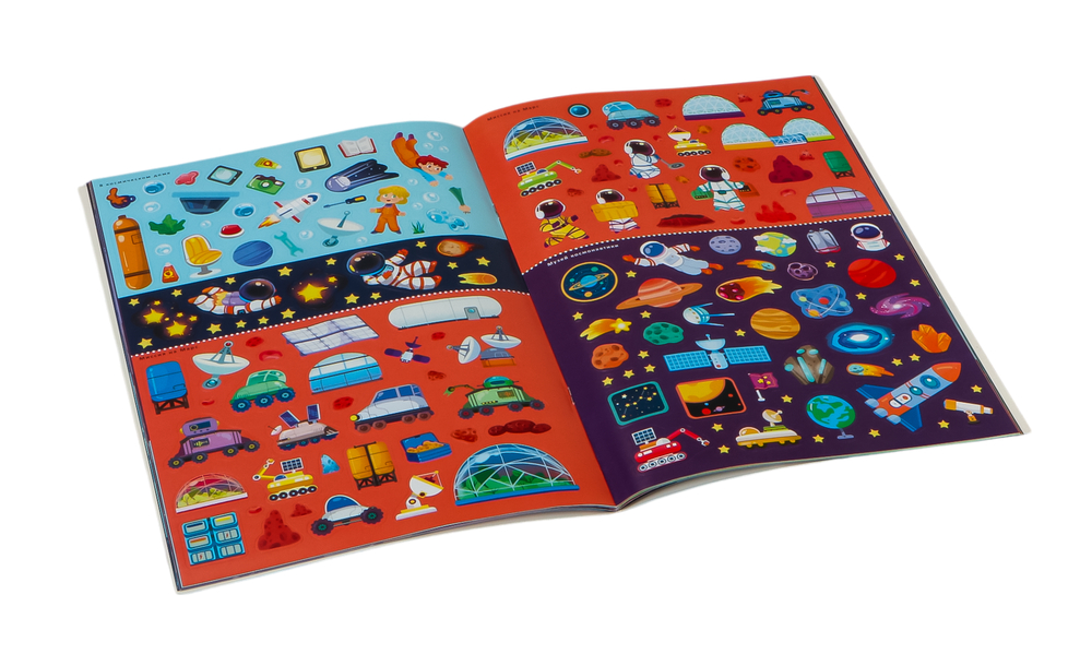 Ваш малыш любит клеить наклейки и ему нужен простор для творчества? Мы придумали книгу как раз для него! В ней вы найдёте 11 ярких тематических фонов с изображениями Солнца и планет, космической станции, Музея космонавтики и более 600 красочных наклеек, которые помогут ребёнку создавать свой собственный мир космоса, познакомят с различными планетами, орбитальной станцией и космическими кораблями, невиданными мирами и звёздными путешественниками.