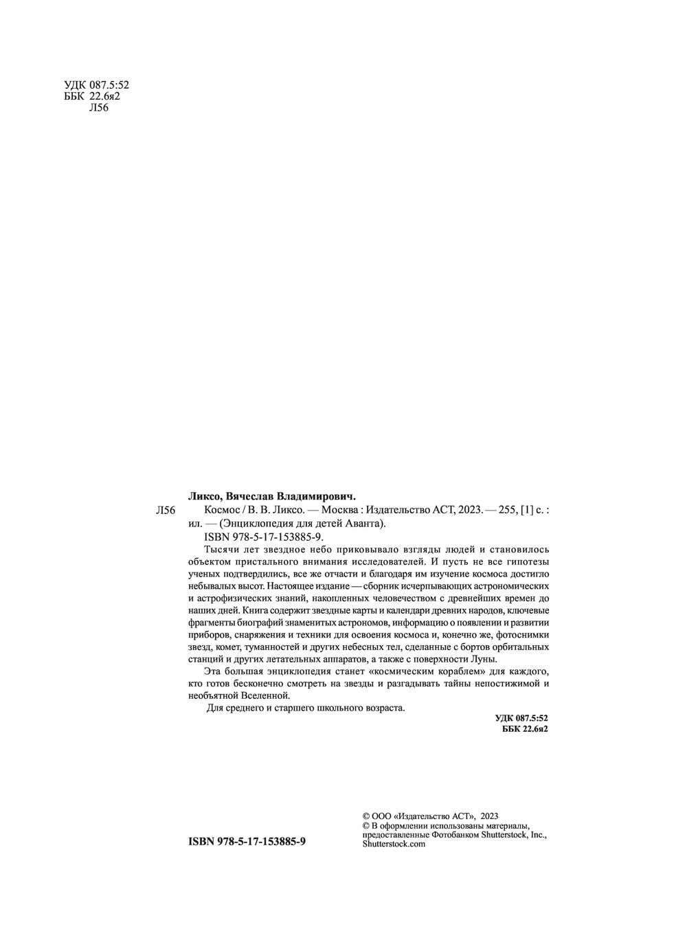 Эта большая энциклопедия станет "космическим кораблем" для каждого, кто готов бесконечно смотреть на звезды и разгадывать тайны непостижимой и необъятной Вселенной.