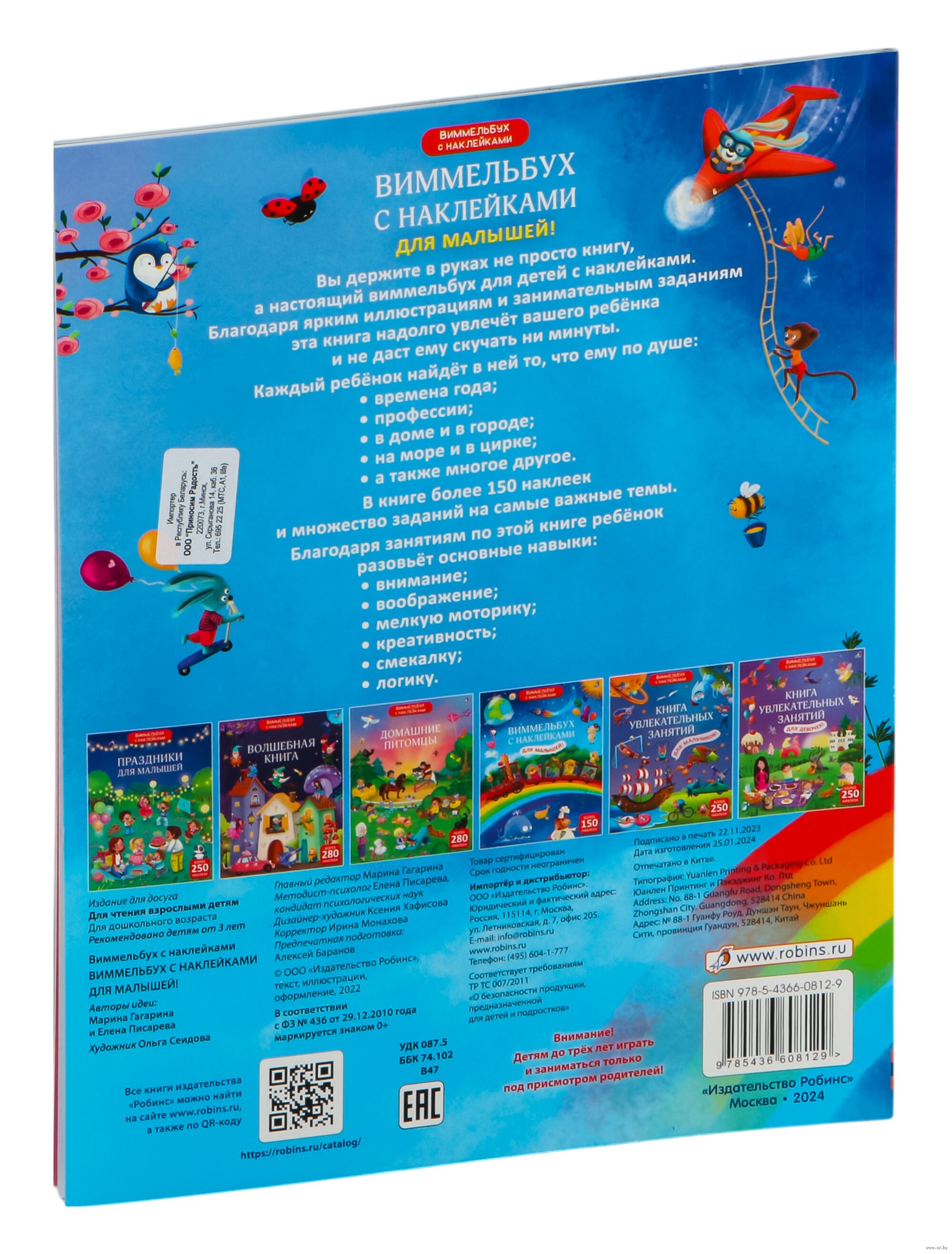Вы держите в руках не просто книгу, а настоящий виммельбух с наклейками для малышей. Благодаря ярким иллюстрациям и занимательным заданиям эта книга надолго увлечёт вашего ребёнка и не даст ему скучать ни минуты.