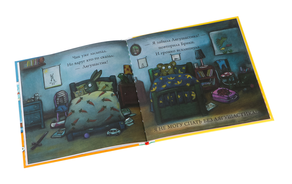 Брики приехала к Чику в гости с ночёвкой. Друзья играли целый день! Расставили машинки по всему полу, устроили ферму под стулом, и ещё придумали классную игру – "Пираты в больнице". Всё было прекрасно до тех пор, пока не пришло время спать. Брики вдруг поняла, что забыла взять свою любимую игрушку – Лягушатника!