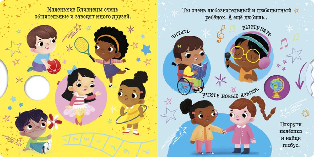 Крутите колесико, читайте коротенькие тексты и ищите ответы на вопросы. А еще тренируйте мелкую моторику, внимание и память. Плотный качественный картон, безопасные скругленные уголки – книжка прослужит долгие годы и не поранит малыша.