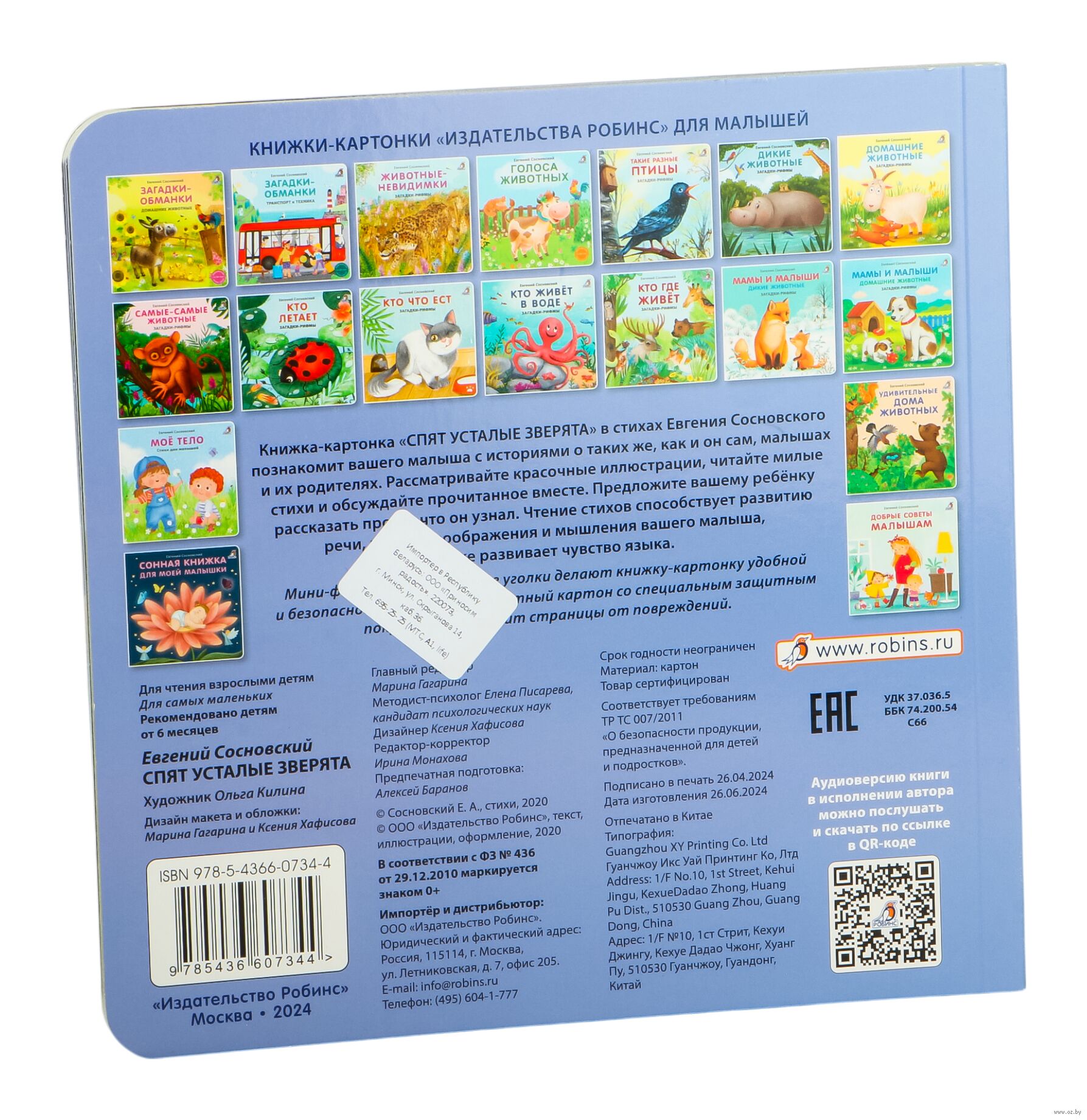 Книжка-картонка "Спят усталые зверята" в стихах Евгения Сосновского познакомит вашего малыша с историями о таких же, как и он сам, малышах и их родителях.