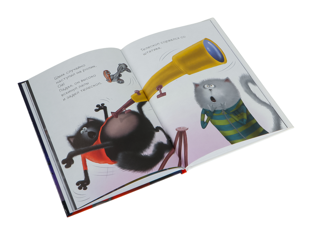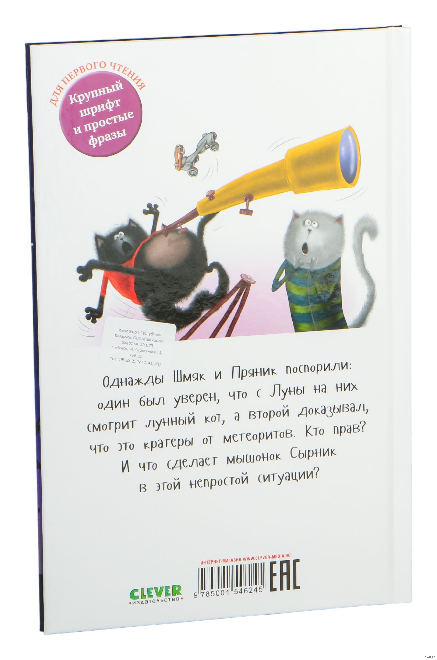 Однажды котенок Шмяк и его друг Пряник поспорили. Один был уверен, что с Луны на них смотрит лунный кот, а второй доказывал, что это кратеры от метеоритов. Кто прав? И что сделает мышонок Сырник в этой непростой ситуации?