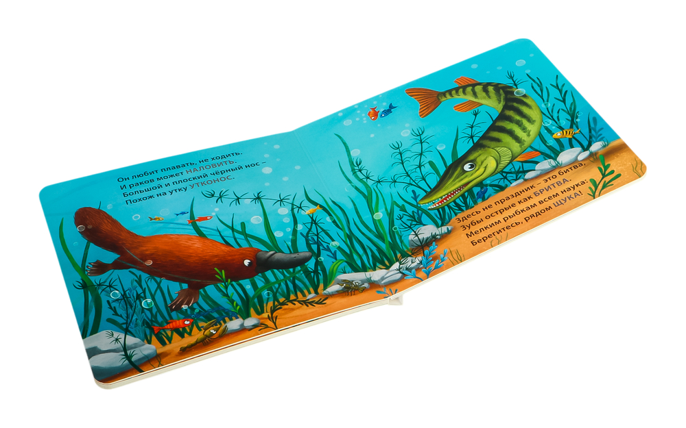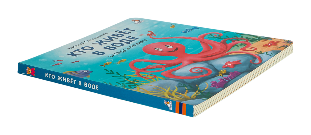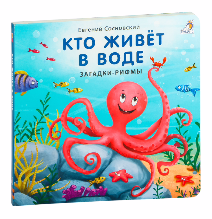 "Книжка-картонка "Кто живёт в воде. Загадки-рифмы" в стихах Евгения Сосновского познакомит вашего малыша с животными, которые живут в реках и озёрах, морях и океанах, их внешним видом и повадками. Стихи написаны так, чтобы ребёнок смог сам срифмовать название животного или другие слова.