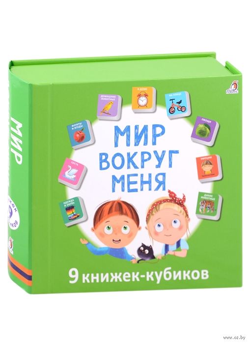 Набор книжек-кубиков "Мир вокруг меня" предназначен для малышей, только начинающих познавать мир и произносить первые слова. Внутри вы найдёте 9 мини-книжек со 100 яркими картинками на самые важные первые темы, которые помогут малышу познакомиться с окружающим миром и запомнить новые слова.