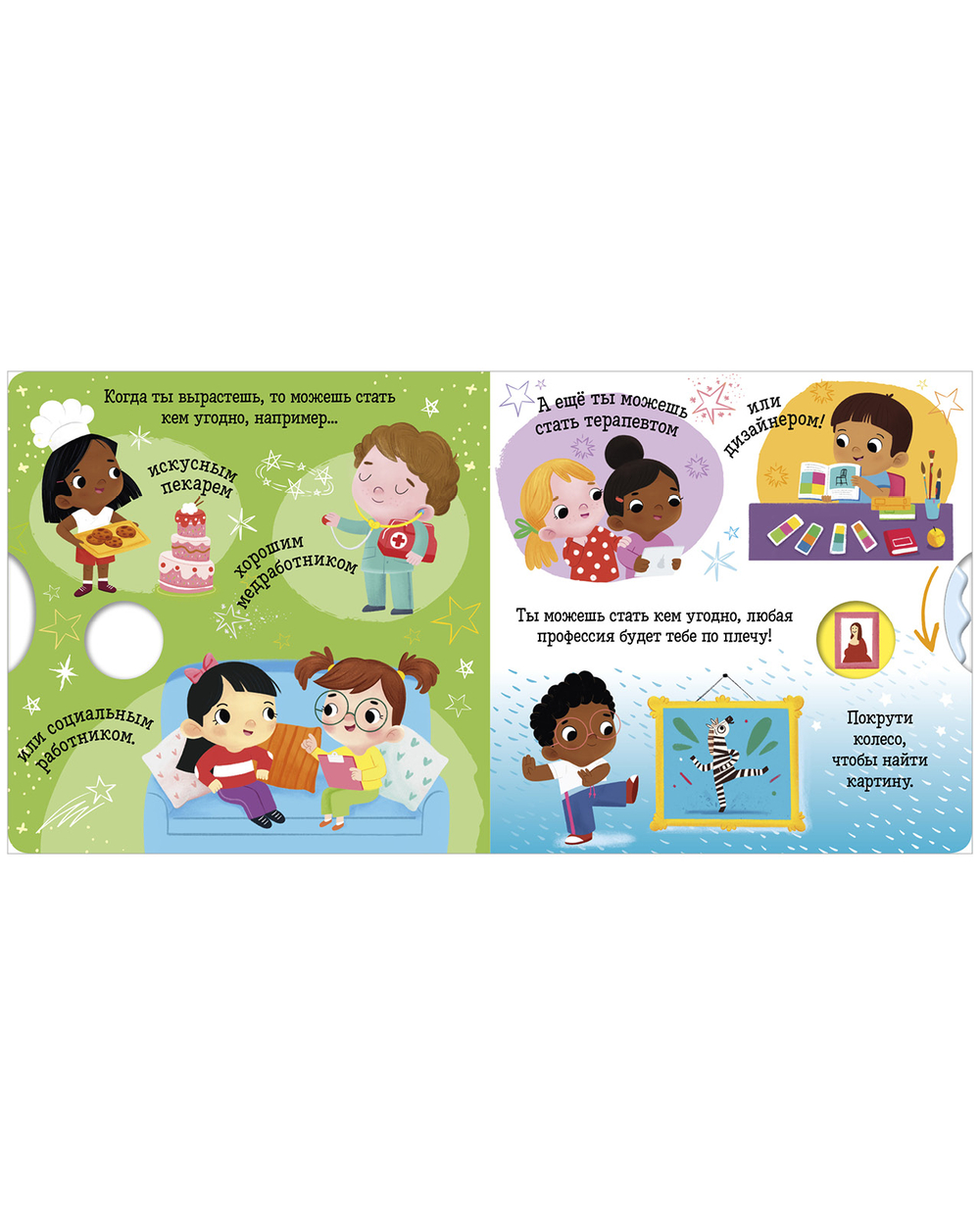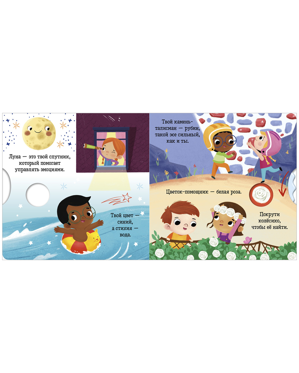 Крутите колесико, читайте коротенькие тексты и ищите ответы на вопросы. А еще тренируйте мелкую моторику, внимание и память. Плотный качественный картон, безопасные скругленные уголки – книжка прослужит долгие годы и не поранит малыша.