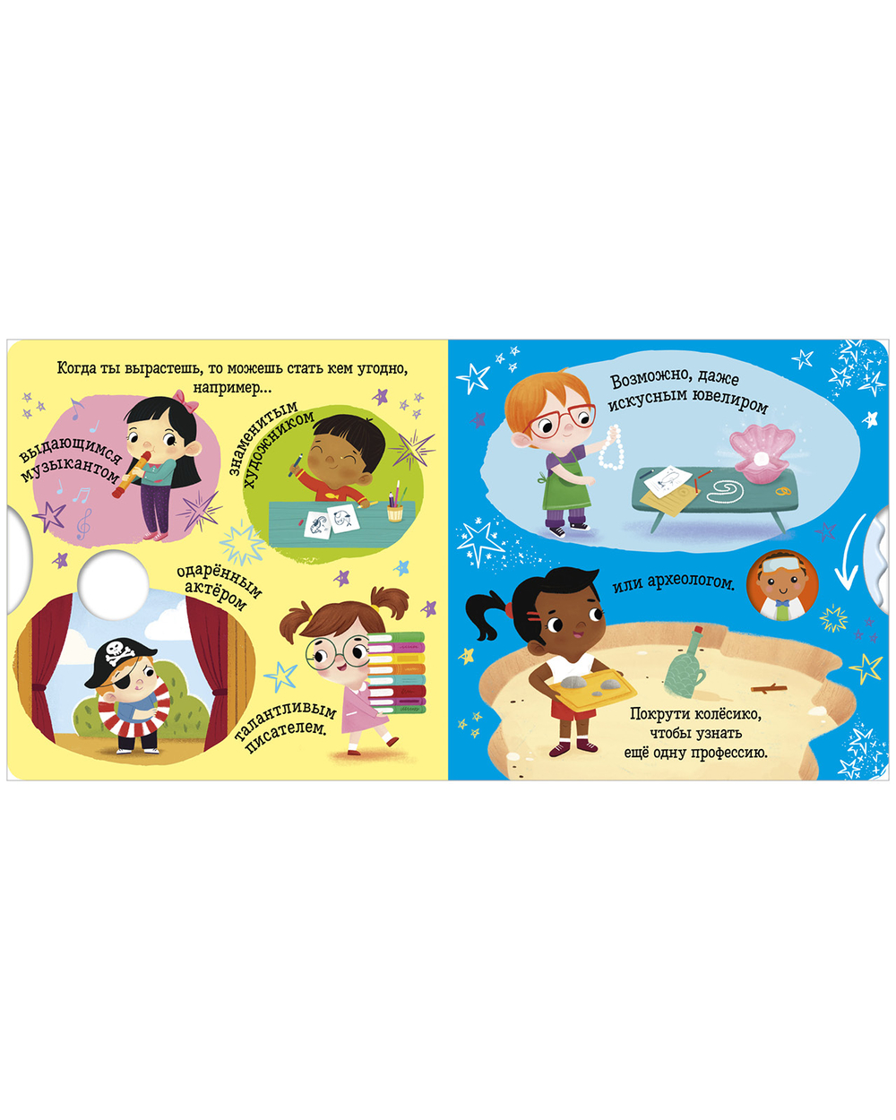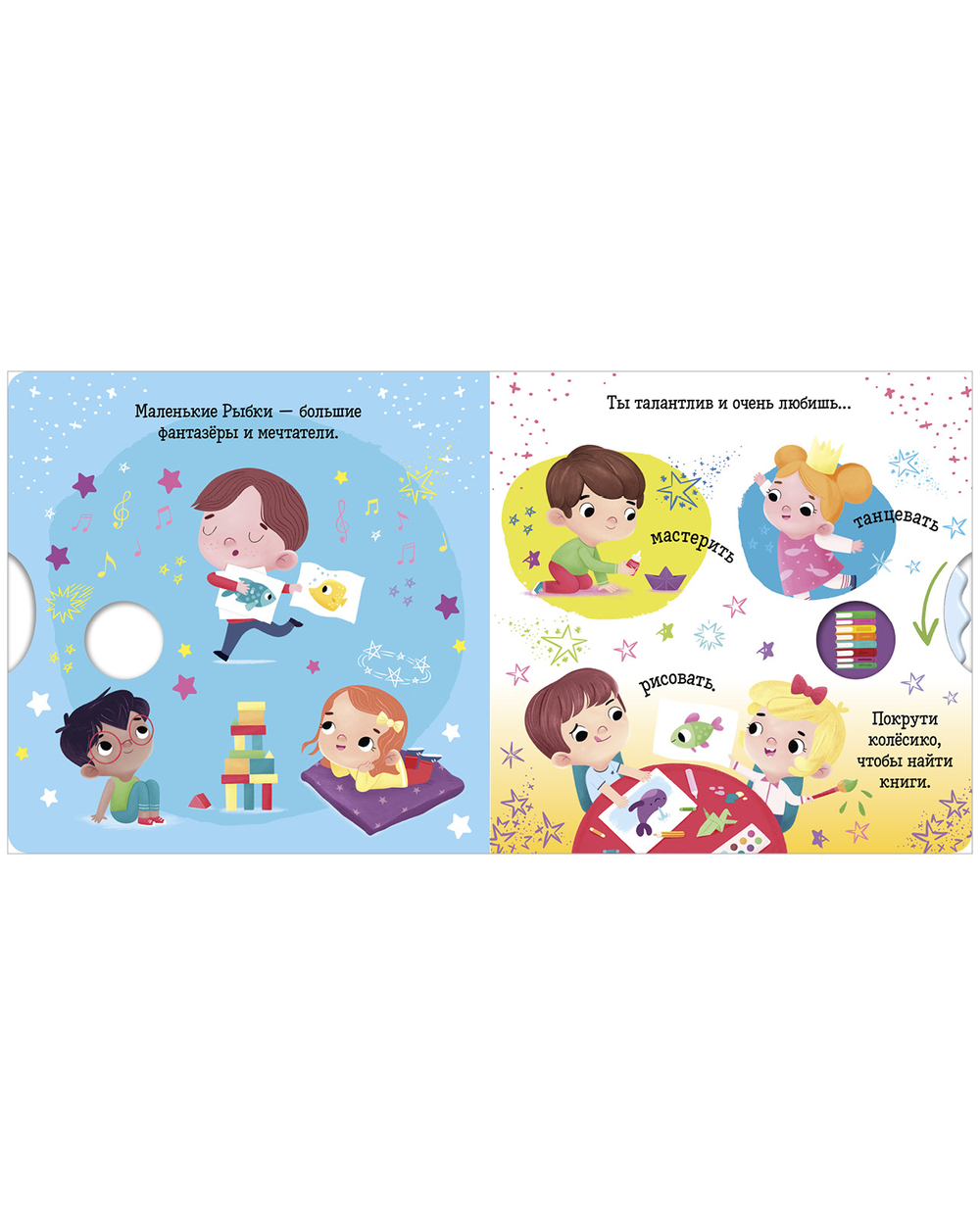 Крутите колесико, читайте коротенькие тексты и ищите ответы на вопросы. А еще тренируйте мелкую моторику, внимание и память. Плотный качественный картон, безопасные скругленные уголки – книжка прослужит долгие годы и не поранит малыша.