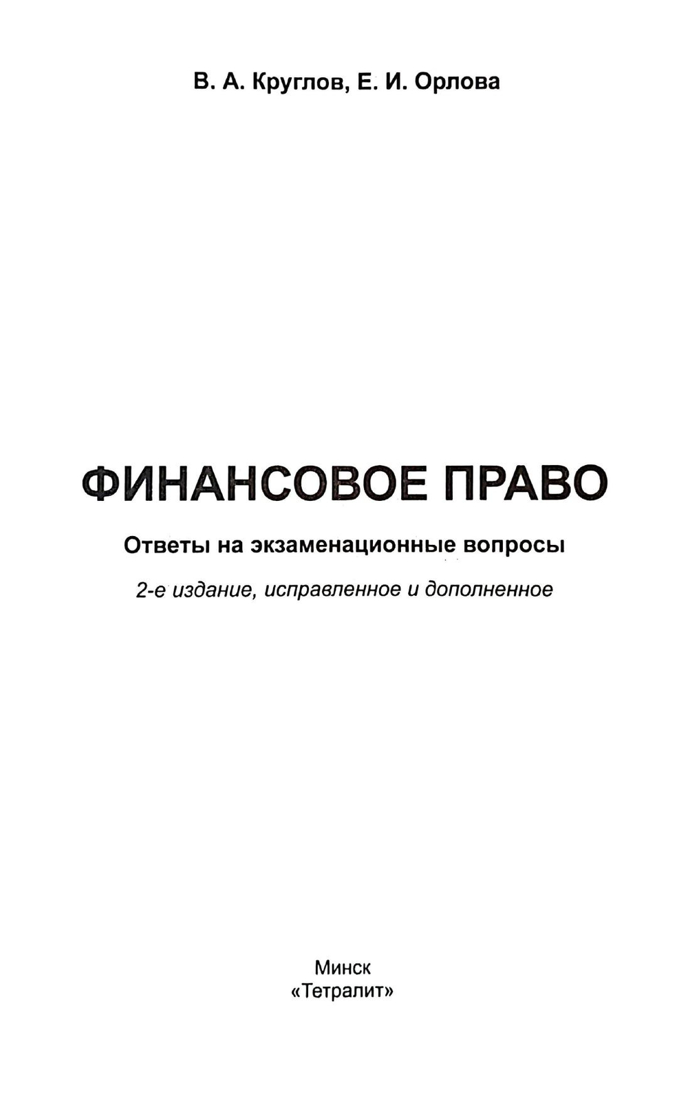 Кратко излагаются ответы на вопросы типовой учебной программы по финансовому праву Республики Беларусь. Предназначено для студентов, преподавателей высших и средних специальных учебных заведений, а также для тех, кто интересуется финансовым законодательством.