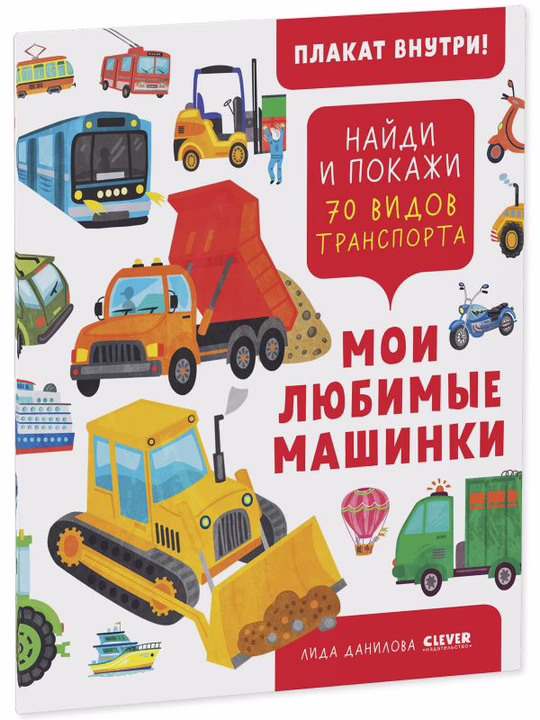 В этой книжке собрано 70 видов транспорта и машин-помощников: крейсер и катамаран, грузовик и легковой автомобиль, мотоцикл и велосипед, подъёмный кран, скорая помощь и много-много других любимых машинок! Яркие развороты, интересные задания, а главное – любимая игра "найди и покажи".