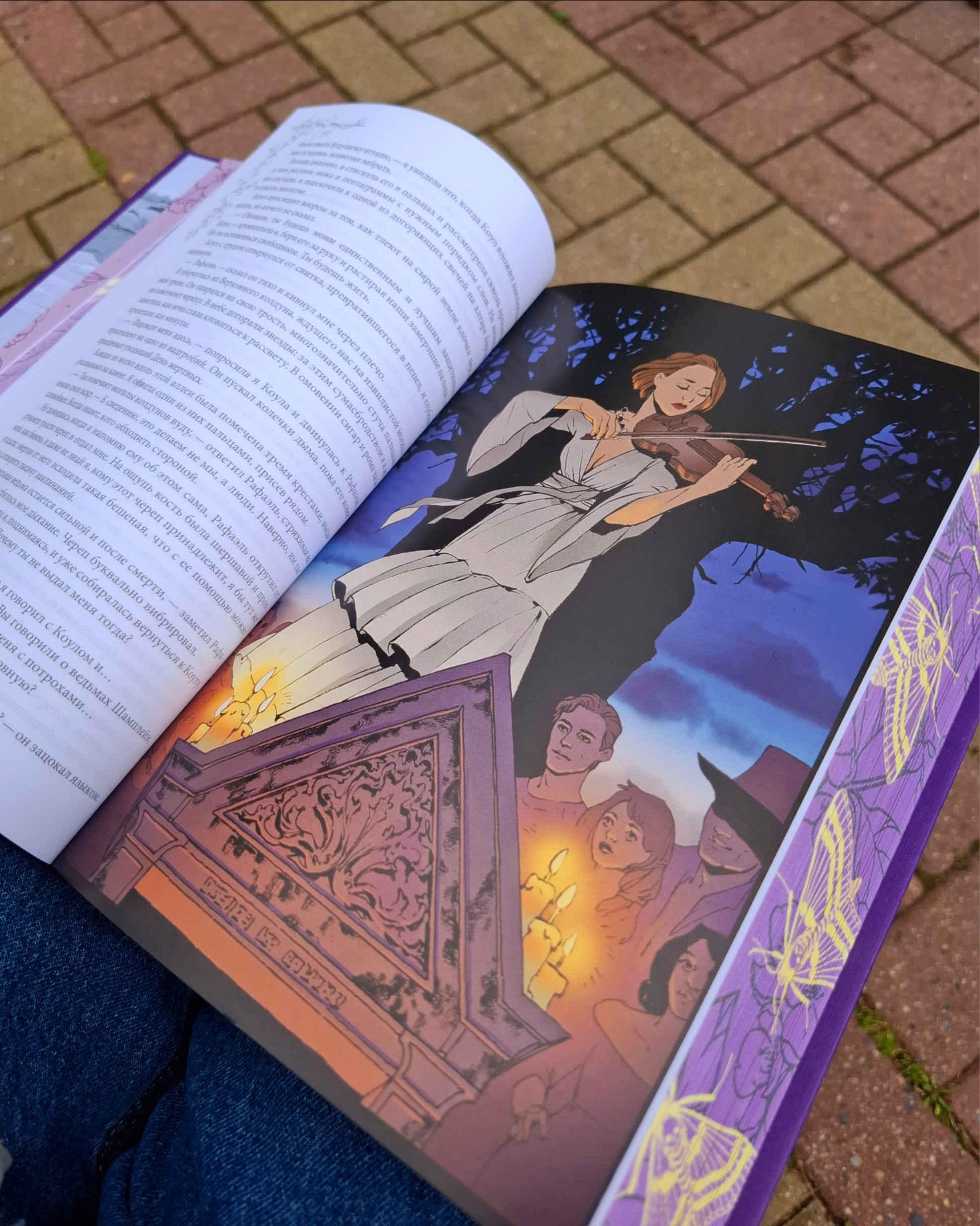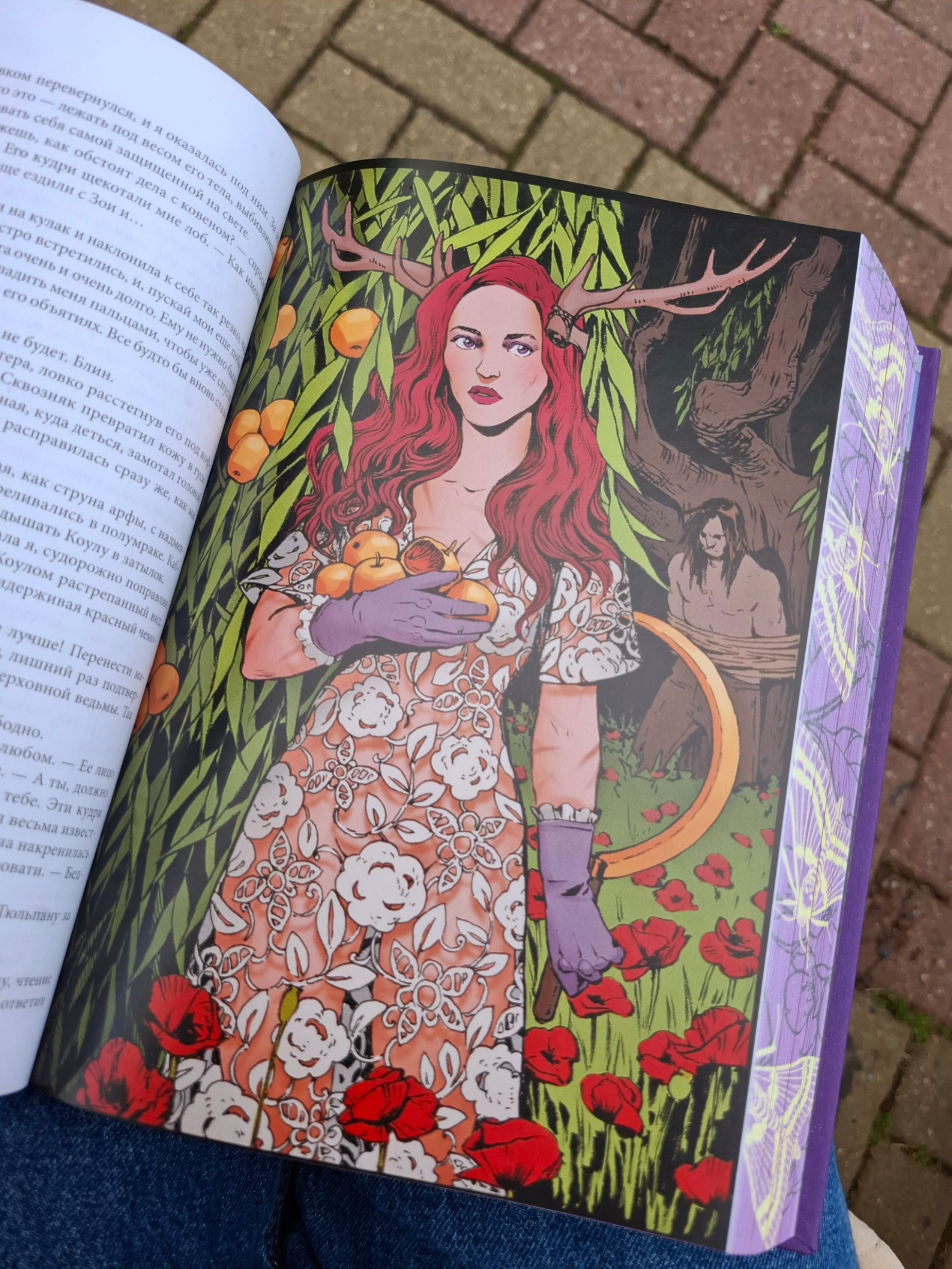 После прочтения трилогии в электронном варианте точно поняла, что хочу себе эти книги на полку. А когда увидела это издание, не смогла смотреть ни на что другое :) В фото добавлю те моменты, которые по своей невнимательности пропустила (и они стали приятным сюрпризом): внутри есть цветные иллюстрации и бонусные главы :) Сюжет книги опишу коротко: абсолютно осенняя история про ведьм с тропами «здоровые отношения» и «обретенная семья». И конечно же неожиданные сюжетные повороты тоже присутствуют)