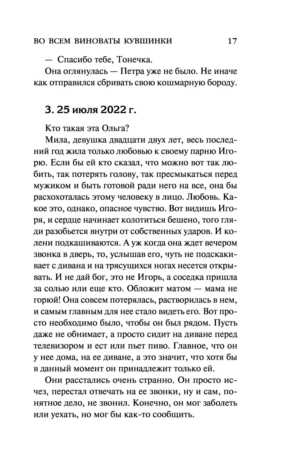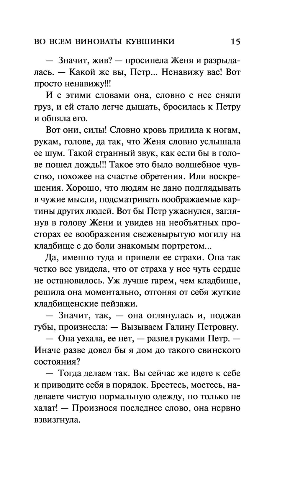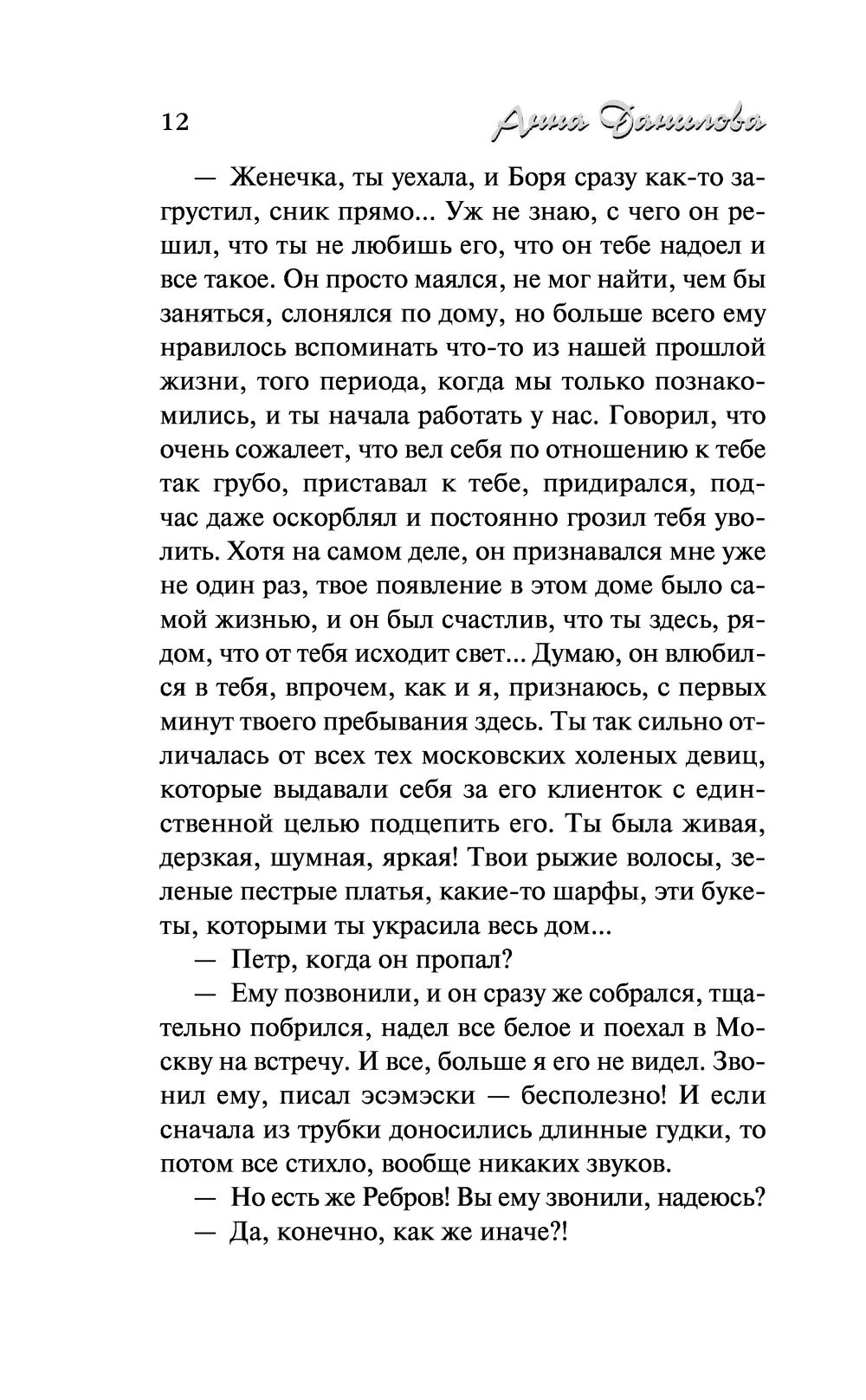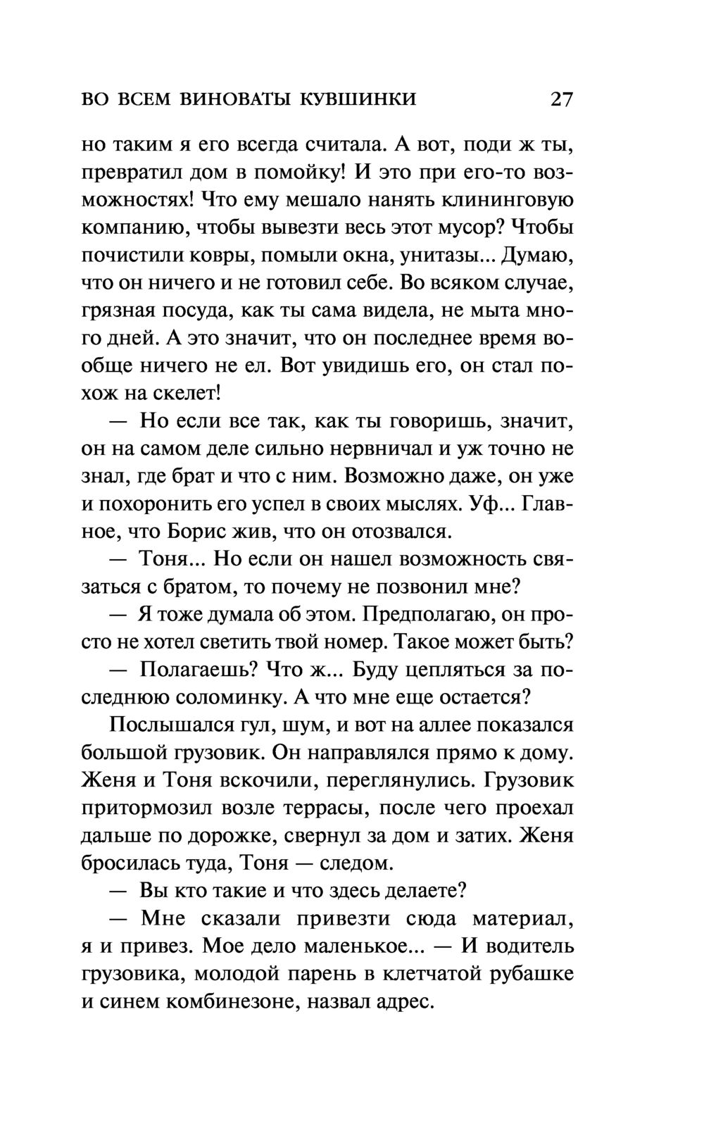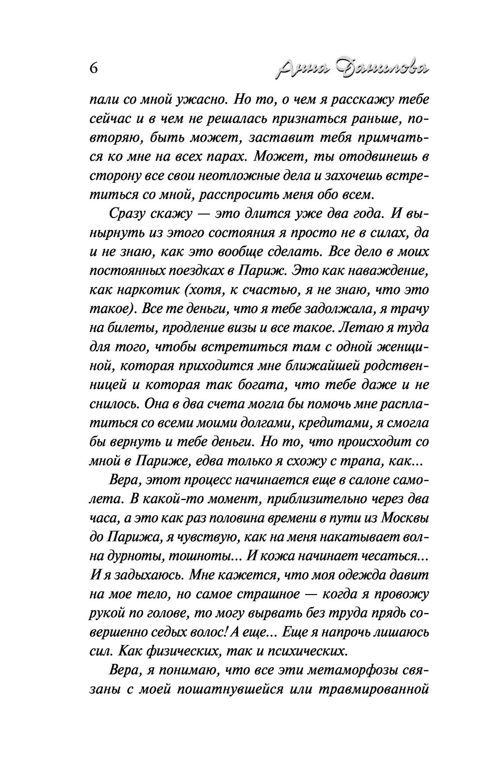 Женя не могла поверить собственным глазам – прямо перед ней в самолете молодая москвичка Лиза превратилась в старушку-француженку Элизу. Она не понимает, кто и для чего ее обманывает и что все это значит. У нее хватает собственных проблем, чтобы заниматься безумными фантазиями – пропал любимый муж известный адвокат Борис, кто-то обманом завладел их загородным домом, какую-то зловещую тайну скрывает брат мужа Петр, а тут еще и странная знакомая Лиза со своей французской бабушкой-богачкой...