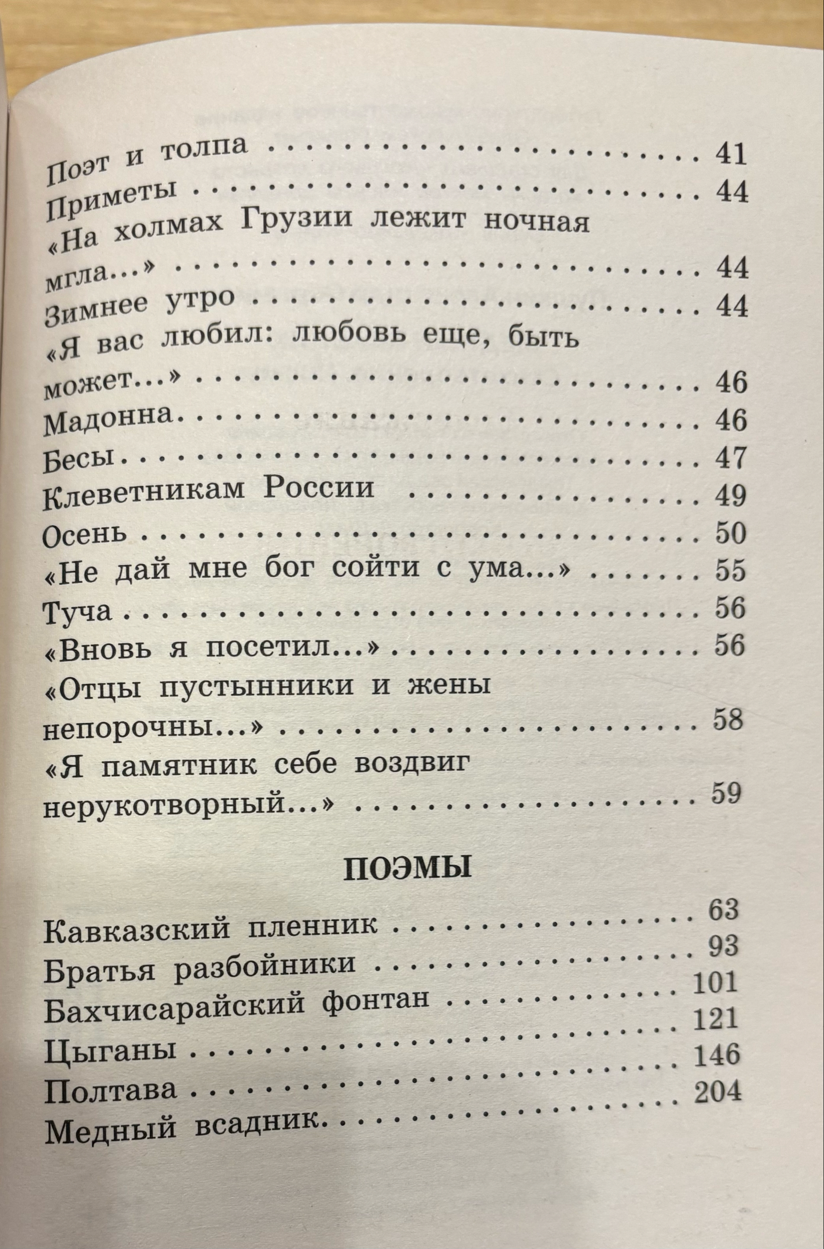 В сборник также вошли основные произведения Александра Пушкина, изучение которых входит в обязательную школьную программу, – поэмы ("Кавказский пленник" (1822), "Бахчисарайский фонтан" (1824) и другие), лирика.