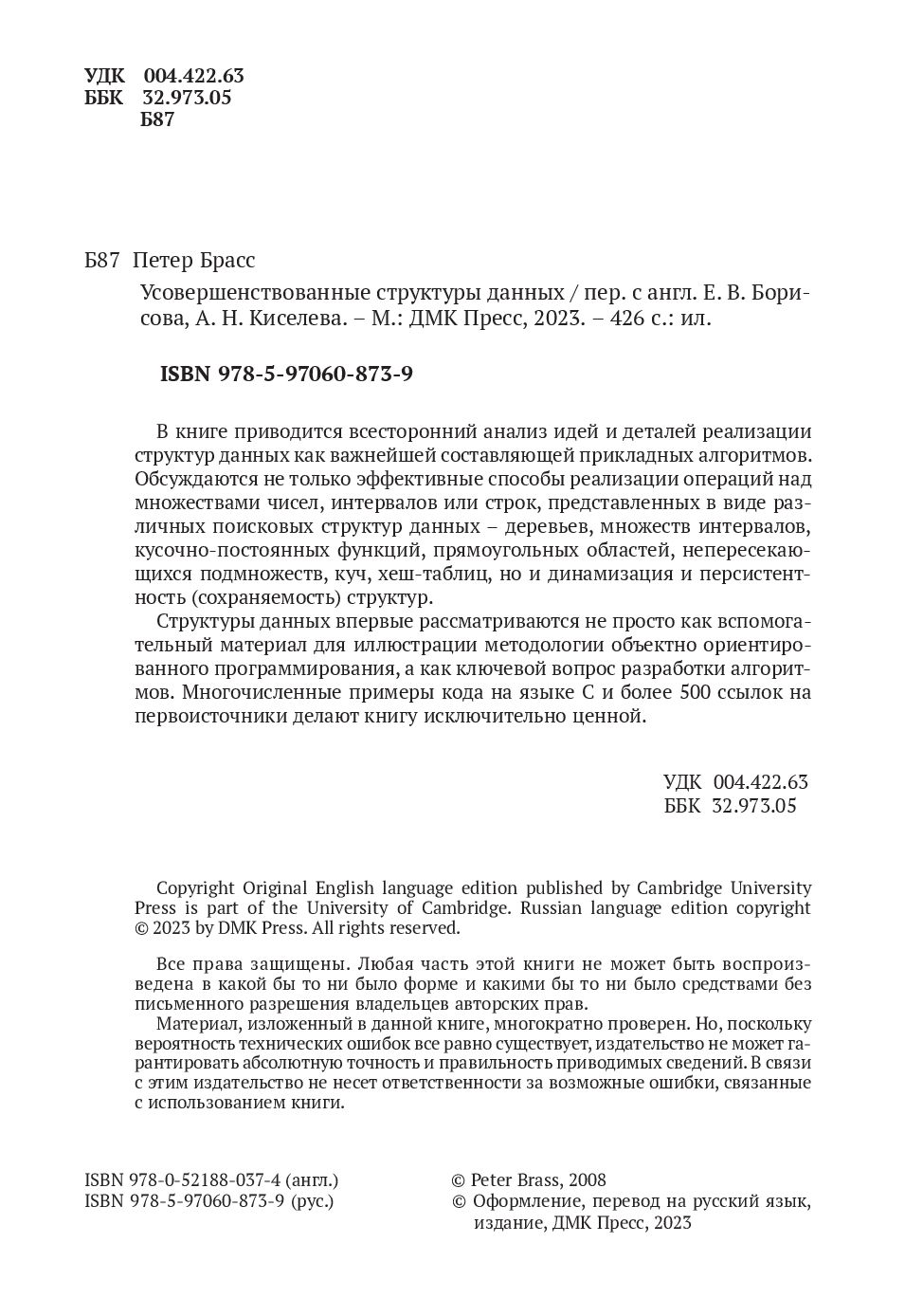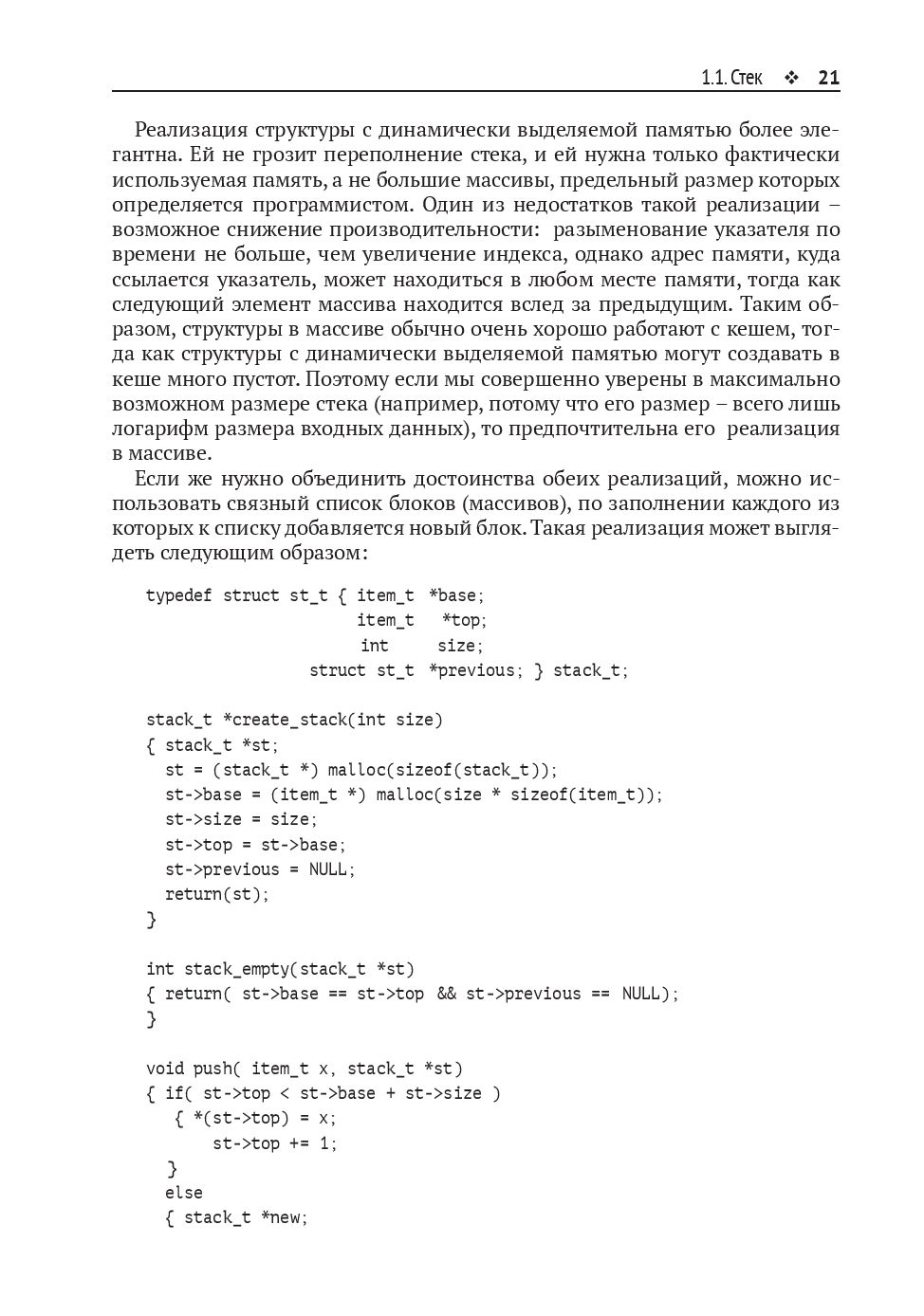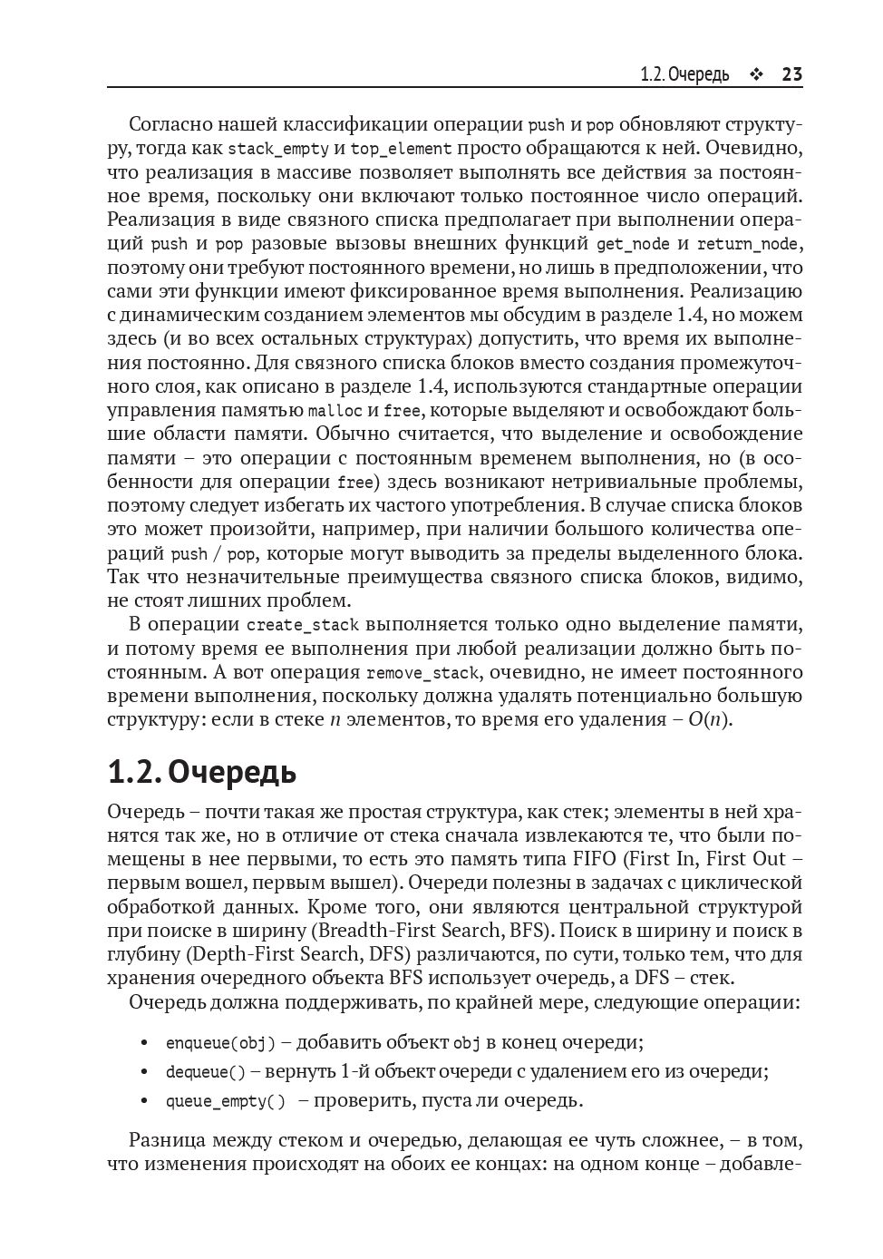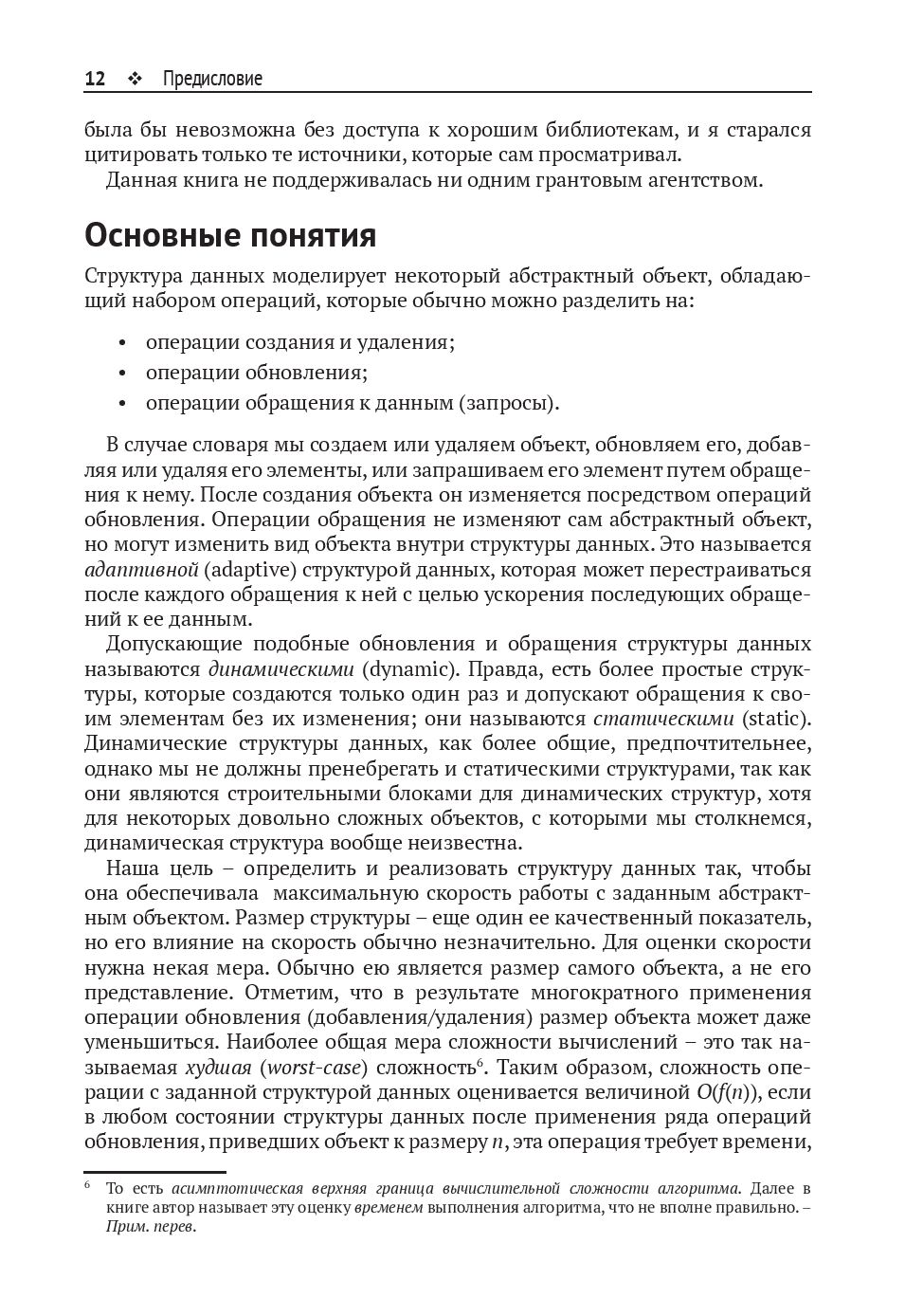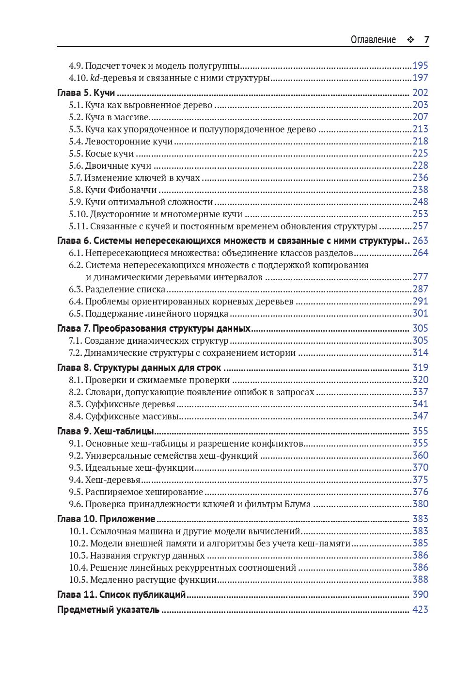 В книге приводится всесторонний анализ идей и деталей реализации структур данных как важнейшей составляющей прикладных алгоритмов. Рассматриваются не только эффективные способы реализации операций над множествами чисел, интервалов или строк в виде различных поисковых структур данных – деревьев, множеств интервалов, кусочно-постоянных функций, прямоугольных областей, непересекающихся подмножеств, куч, хеш-таблиц, но и динамизация и персистентность (сохраняемость) структур.