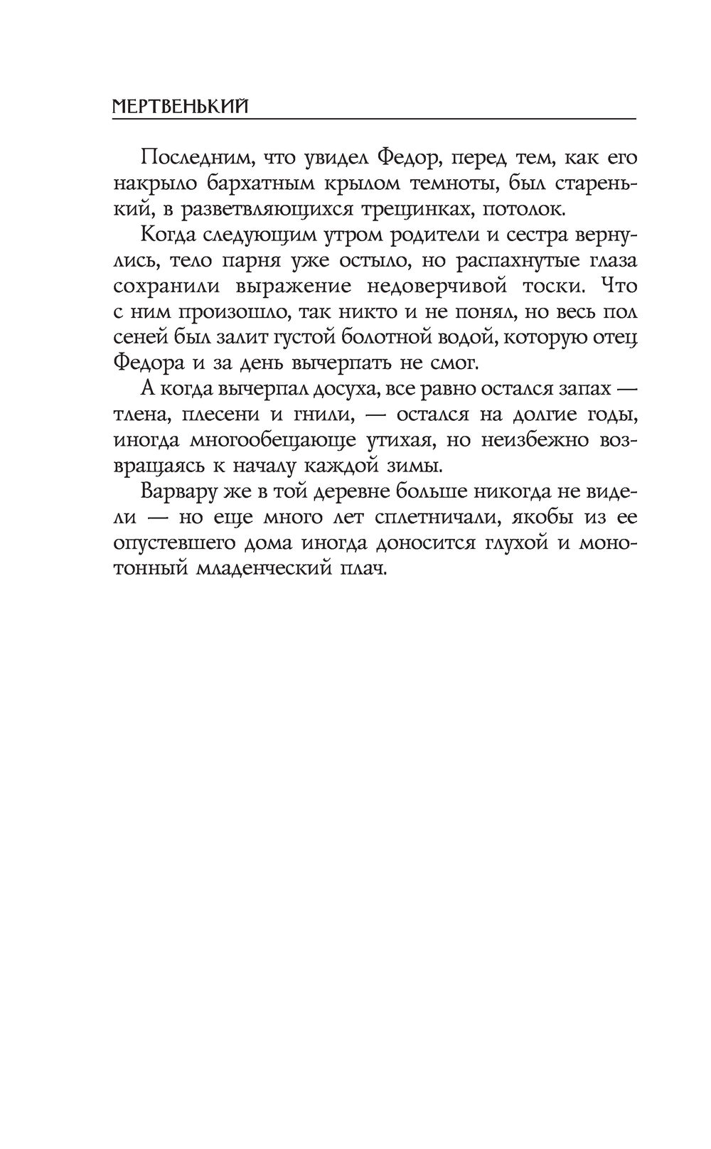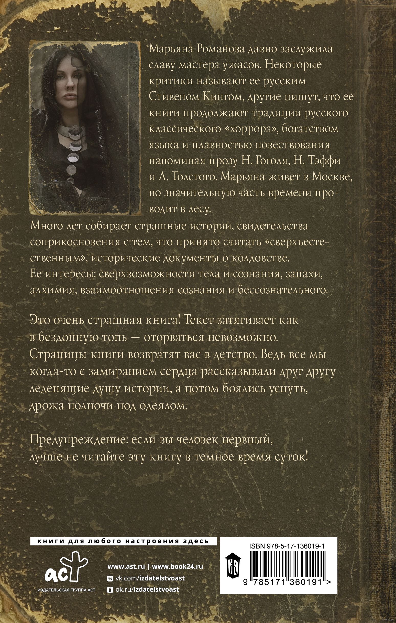 Это очень страшная книга! Текст затягивает как в бездонную топь – оторваться невозможно. Страницы книги возвратят вас в детство. Ведь все мы когда-то с замиранием сердца рассказывали друг другу леденящие душу истории, а потом боялись уснуть, дрожа полночи под одеялом.