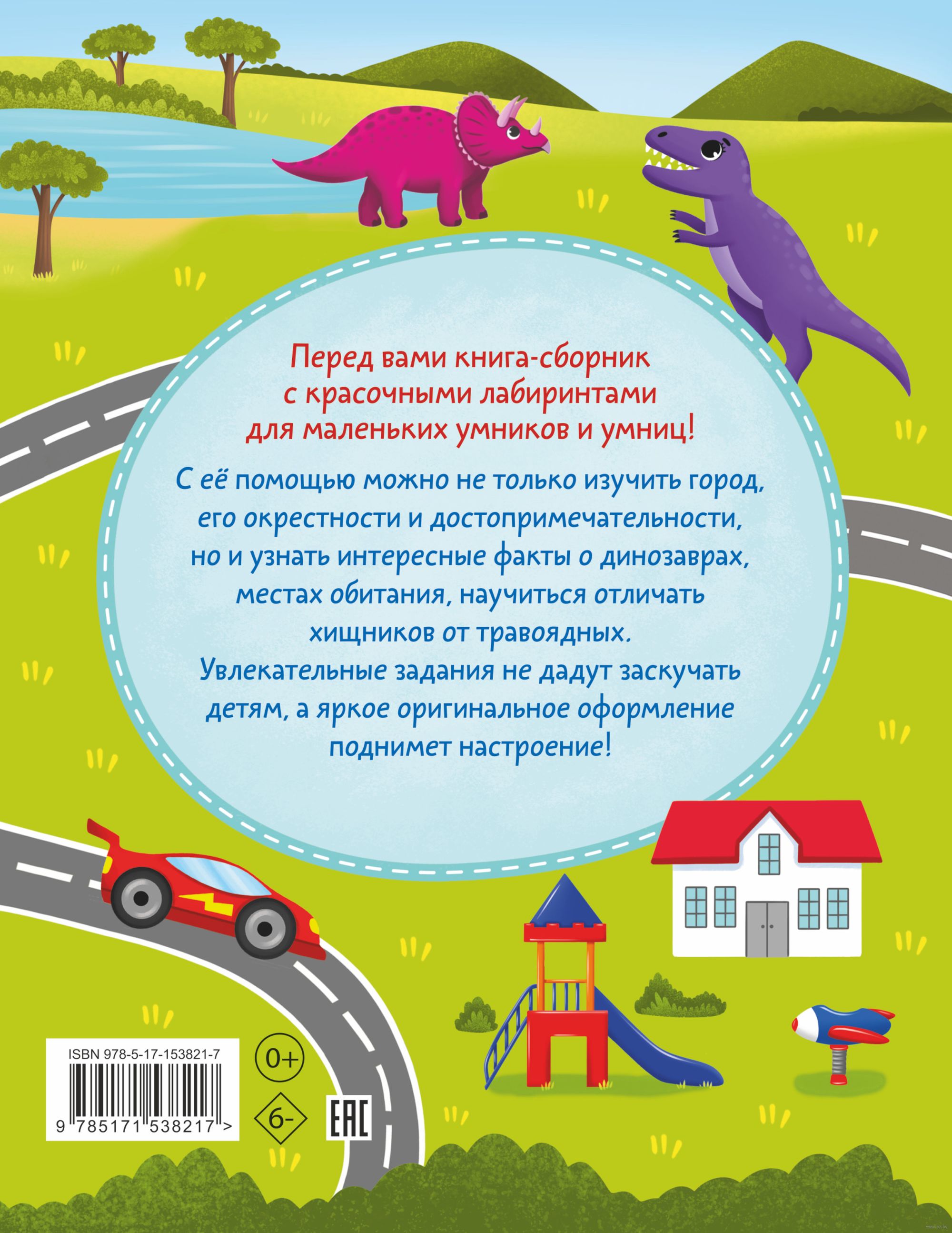 Перед вами книга-сборник с красочными лабиринтами для маленьких умников и умниц! С её помощью можно не только изучить город, его окресности и достопримечательности, но и узнать интересные факты о динозаврах, местах обитания, научиться отличать хищников от травоядных. Увлекательные зания не дадут заскучать детям, а яркое оригинальное оформление поднимет настроение!