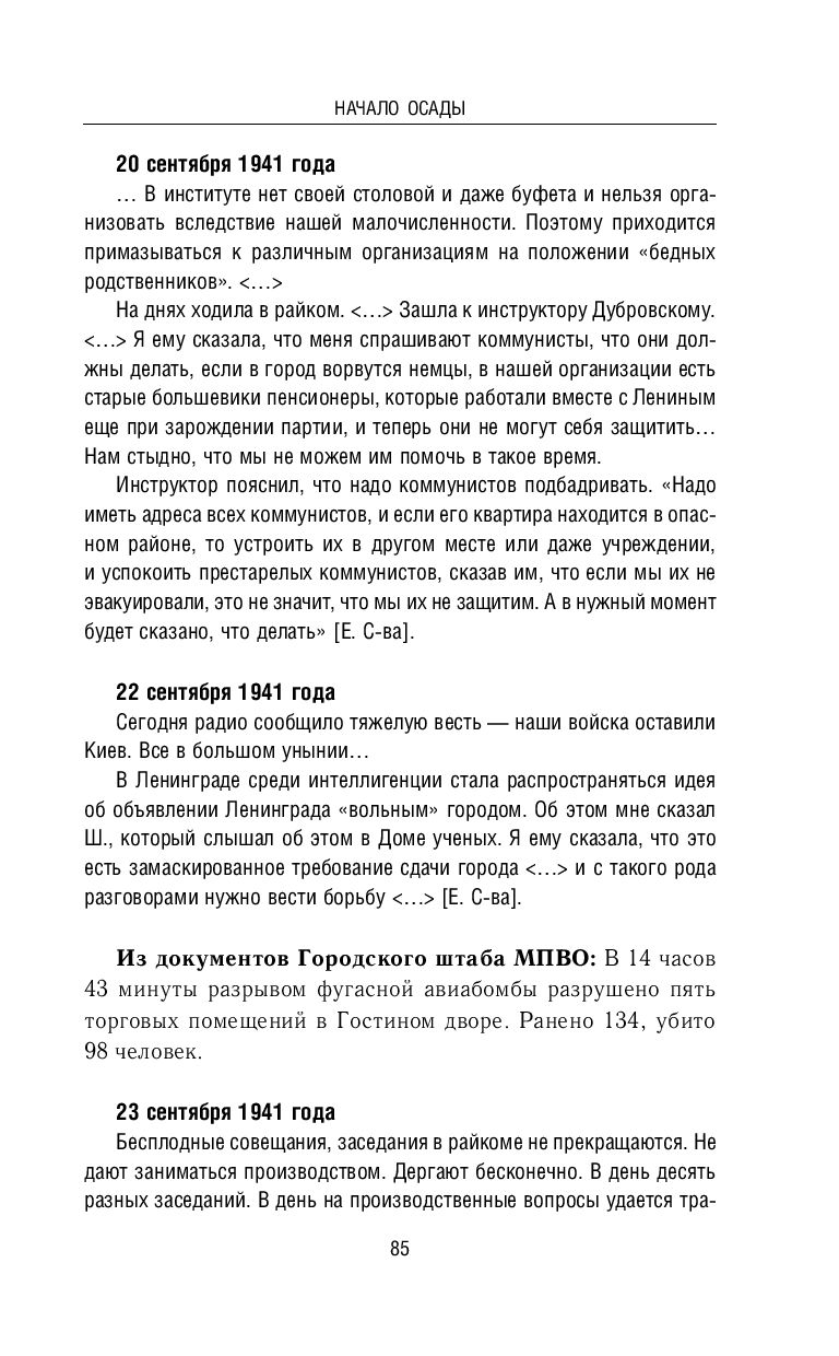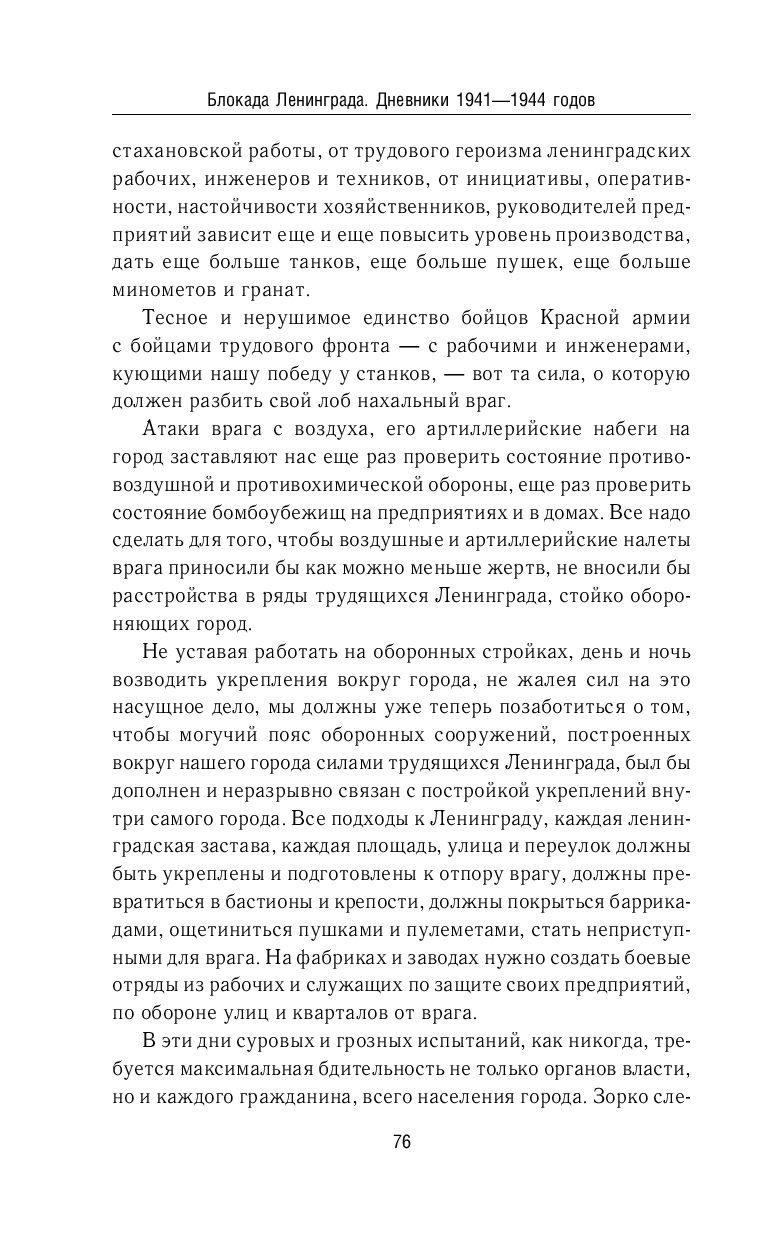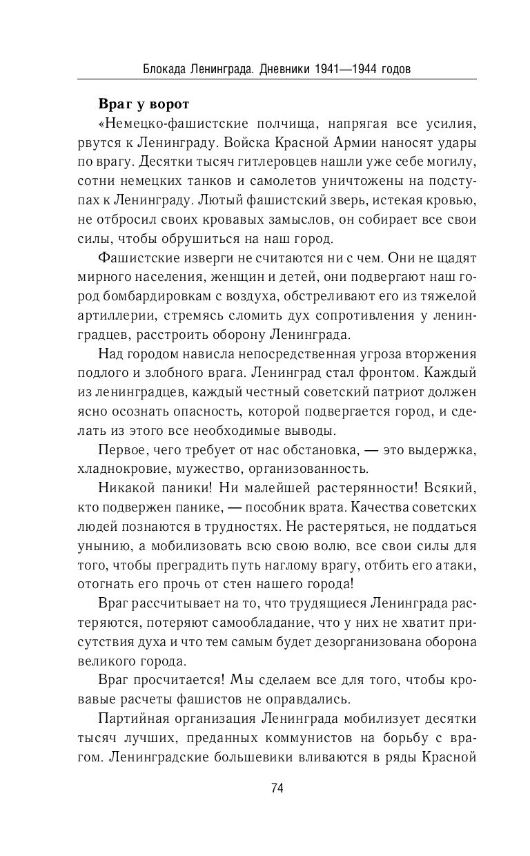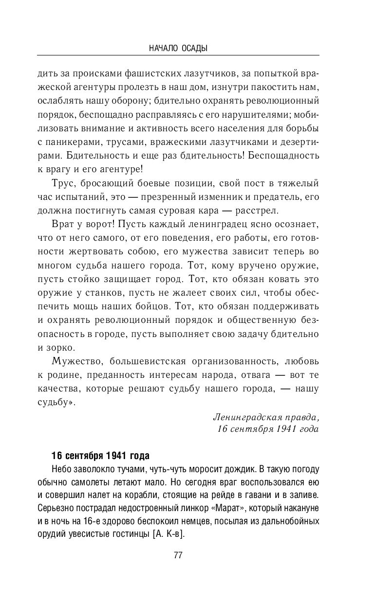 Эта книга основана на хранящихся в архивах дневниках ленинградцев, бесценных свидетельствах борьбы с голодом, стужей, варварскими артобстрелами и бомбежками. Дневниковые записи 1941-1944 гг. дополнены документами и газетными публикациями того "смертного времени", позволяя читателю увидеть повседневную жизнь, а точнее выживание осажденного города изнутри, узнать радости и горести его жителей, понять, как им удалось отстоять Ленинград.