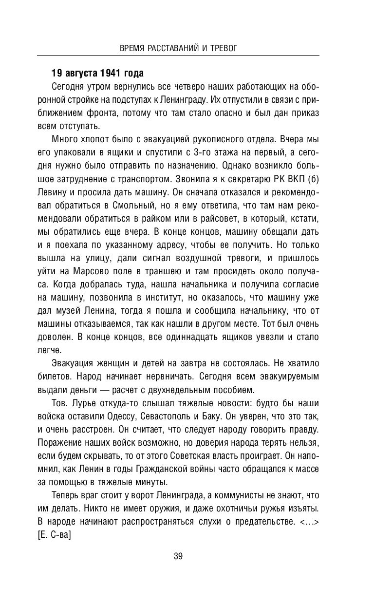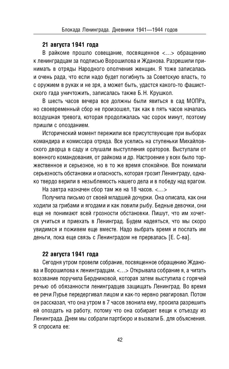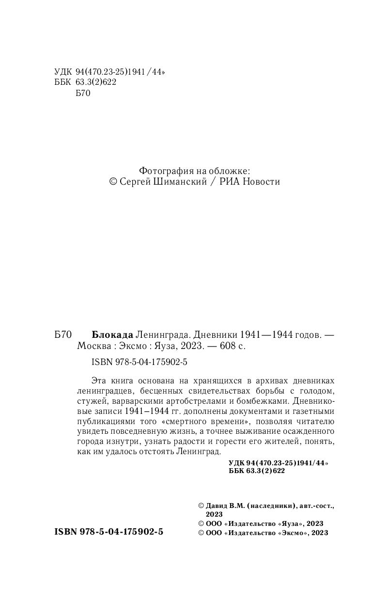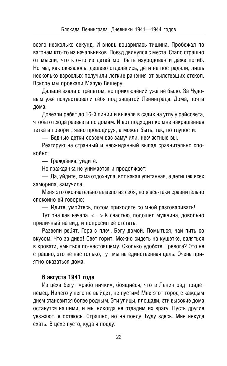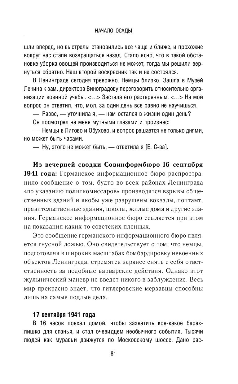 Эта книга основана на хранящихся в архивах дневниках ленинградцев, бесценных свидетельствах борьбы с голодом, стужей, варварскими артобстрелами и бомбежками. Дневниковые записи 1941-1944 гг. дополнены документами и газетными публикациями того "смертного времени", позволяя читателю увидеть повседневную жизнь, а точнее выживание осажденного города изнутри, узнать радости и горести его жителей, понять, как им удалось отстоять Ленинград.