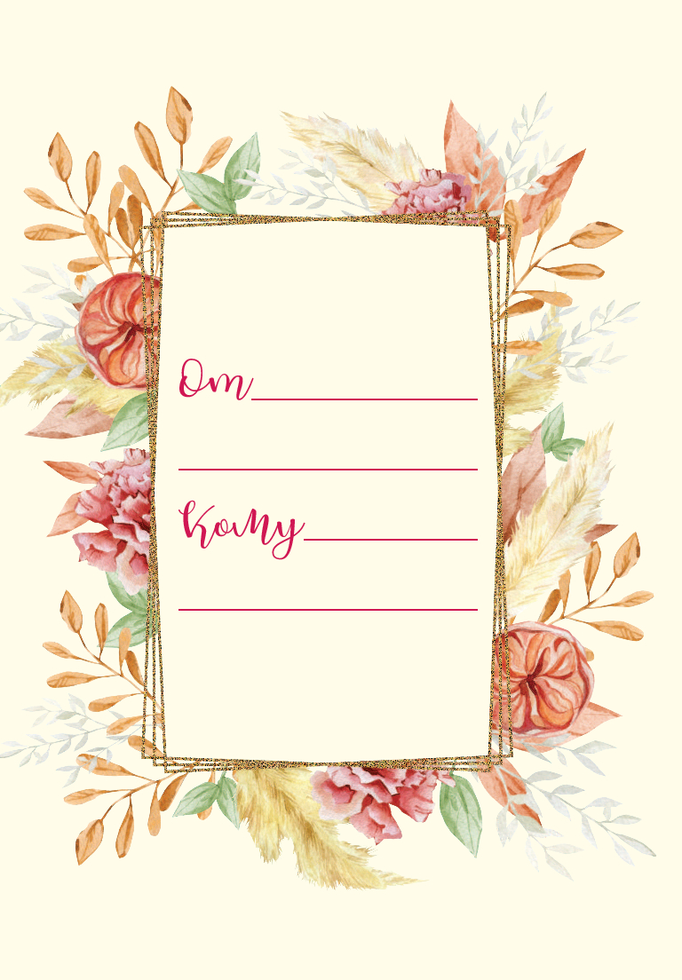 Открытку украшают нежные рисунки, придающие ей праздничный вид. В нее можно вписать имена адресанта и получателя, а также собственные пожелания. Для этого есть пустые строки в конце книги.