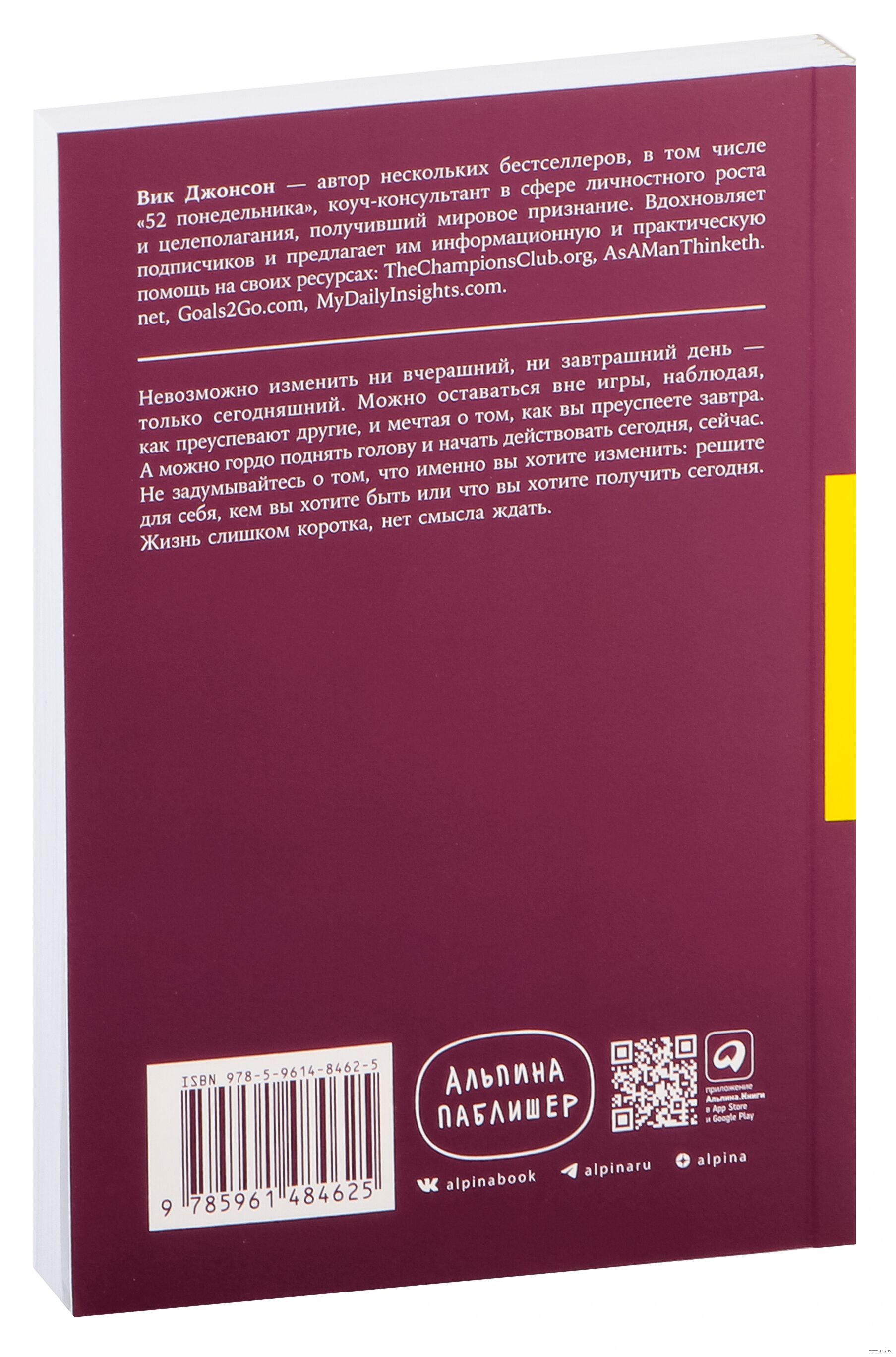 Известный специалист по саморазвитию, автор бестселлера "52 понедельника" Вик Джонсон утверждает: "Ты то, что ты думаешь", а значит, изменив образ мышления, можно поменять многие аспекты своей жизни. Например, наконец заняться спортом в удовольствие, а не принуждая себя, или решиться на глобальные перемены – переезд или смену работы. На страницах этой книги вы найдете не только тонкие наблюдения о связи мышления с нашими мечтами, успехами и неудачами, но и практические советы и упражнения, которые помогут настроить подсознание на новую, счастливую жизнь.