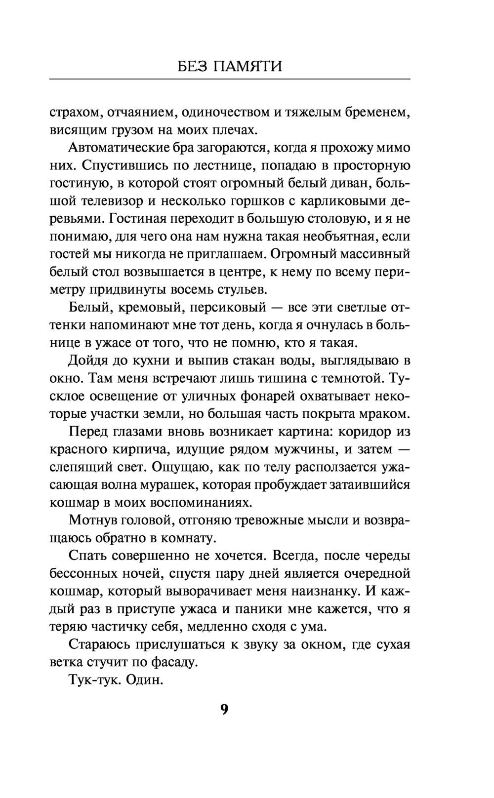 Наверное, стоит сообщить полиции о том, что в городе объявился безумец, а возможно, даже маньяк. Но вместо этого Мия начинает шаг за шагом восстанавливать пробелы своей памяти и тайно следить за мужем. Вернуть утраченные фрагменты жизни очень непросто, особенно если амнезия – результат чьего-то злого умысла. Но еще труднее вынести дьявольскую пытку, когда воспоминания начинают по крупицам возвращаться, а в них – совершенно жуткие события...
