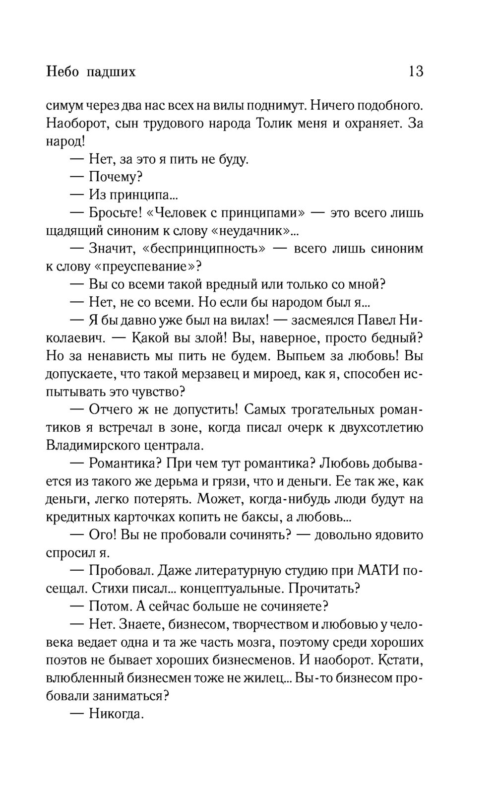 В новый сборник вошли две знаменитые повести Юрия Полякова, ставшие яркими событиями литературной жизни последнего десятилетия 20 века, а впоследствии – классикой отечественной словесности. Сюжет антиутопии "Демгородок" разворачивается в России, где Избавитель Отечества наконец навел порядок. "Небо падших", по мнению критиков, – лучшее, что написано о "рыцарях первичного накопления" и "лихих девяностых". В обоих повестях читатель найдет острый сюжет, щемящую историю любви и великолепный русский язык.