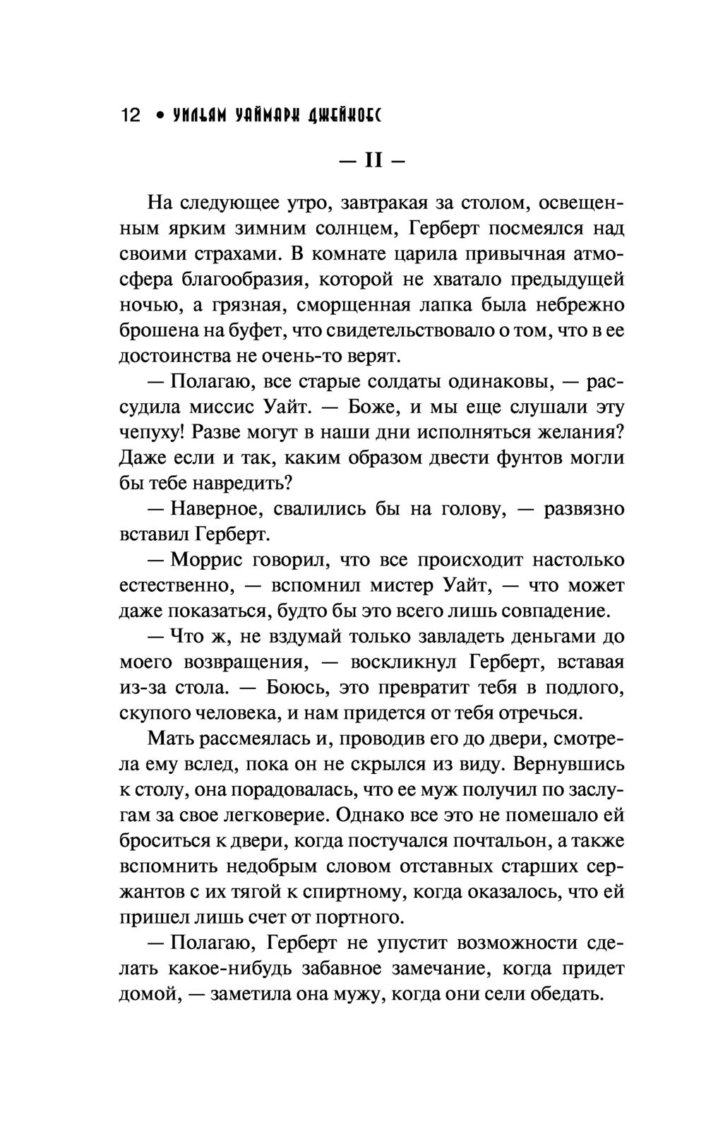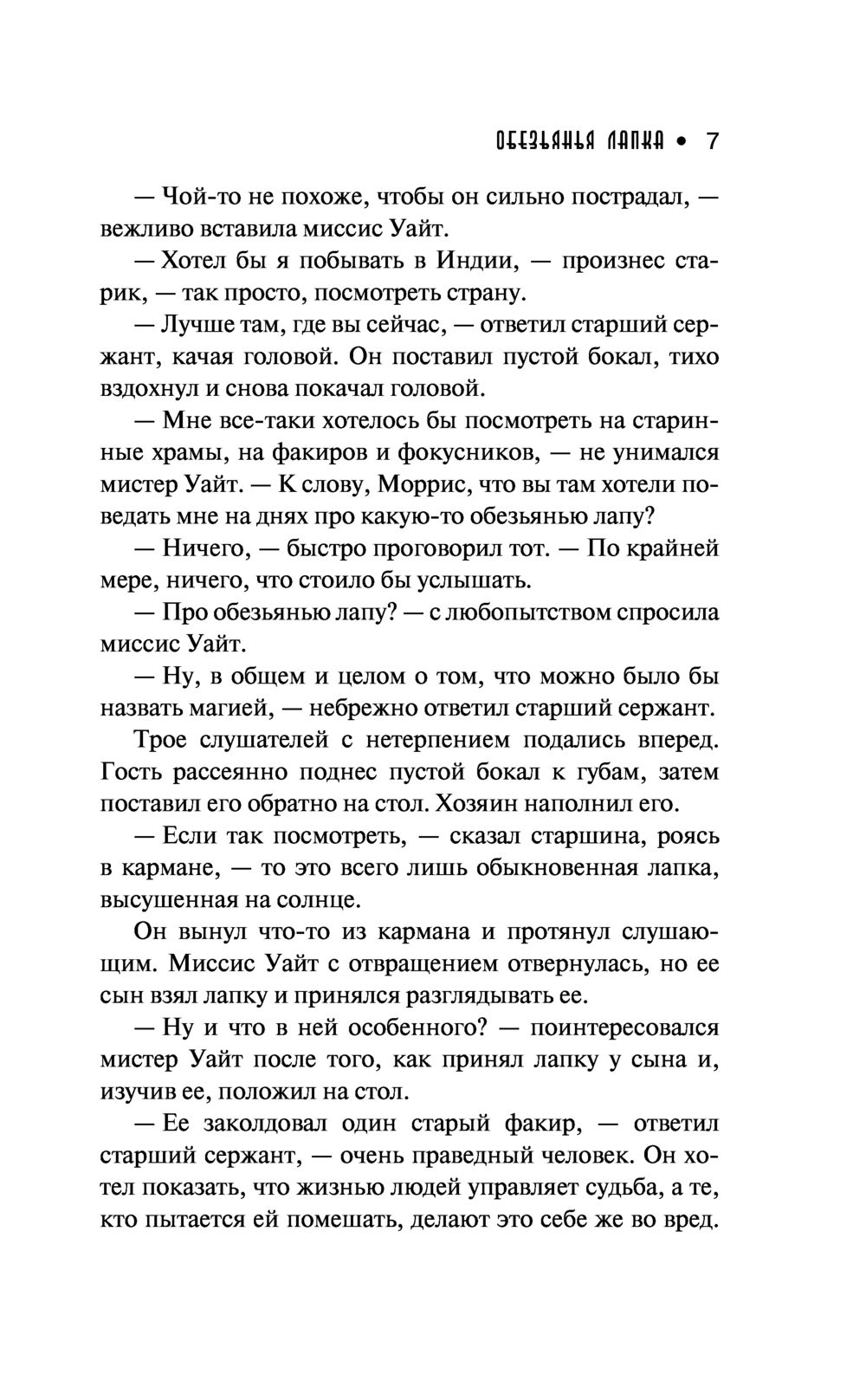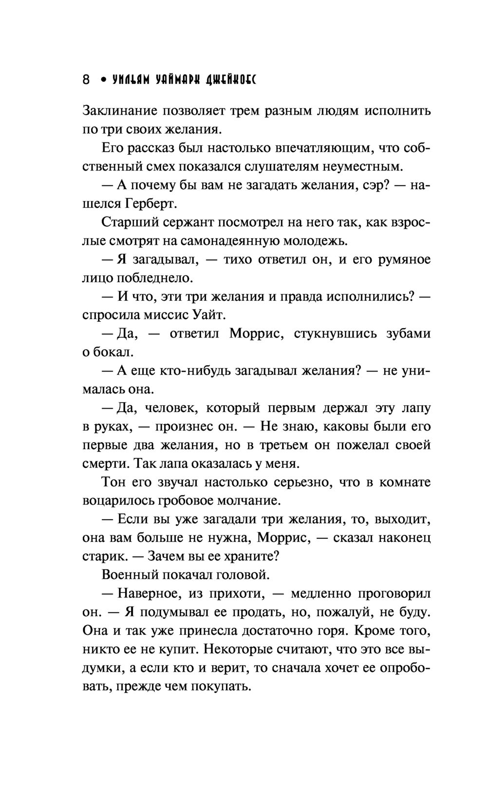 В сборник вошли и другие произведения Джейкобса, объединенные мистической темой, как серьезные и по-настоящему пугающие, так и ироничные, дразнящие читателя намеками на сверхъестественное, в итоге получающее неожиданное, но вполне реалистичное объяснение; а также озорные, принадлежащие к любимому автором жанру "моряцких баек о чудесах океанских глубин".