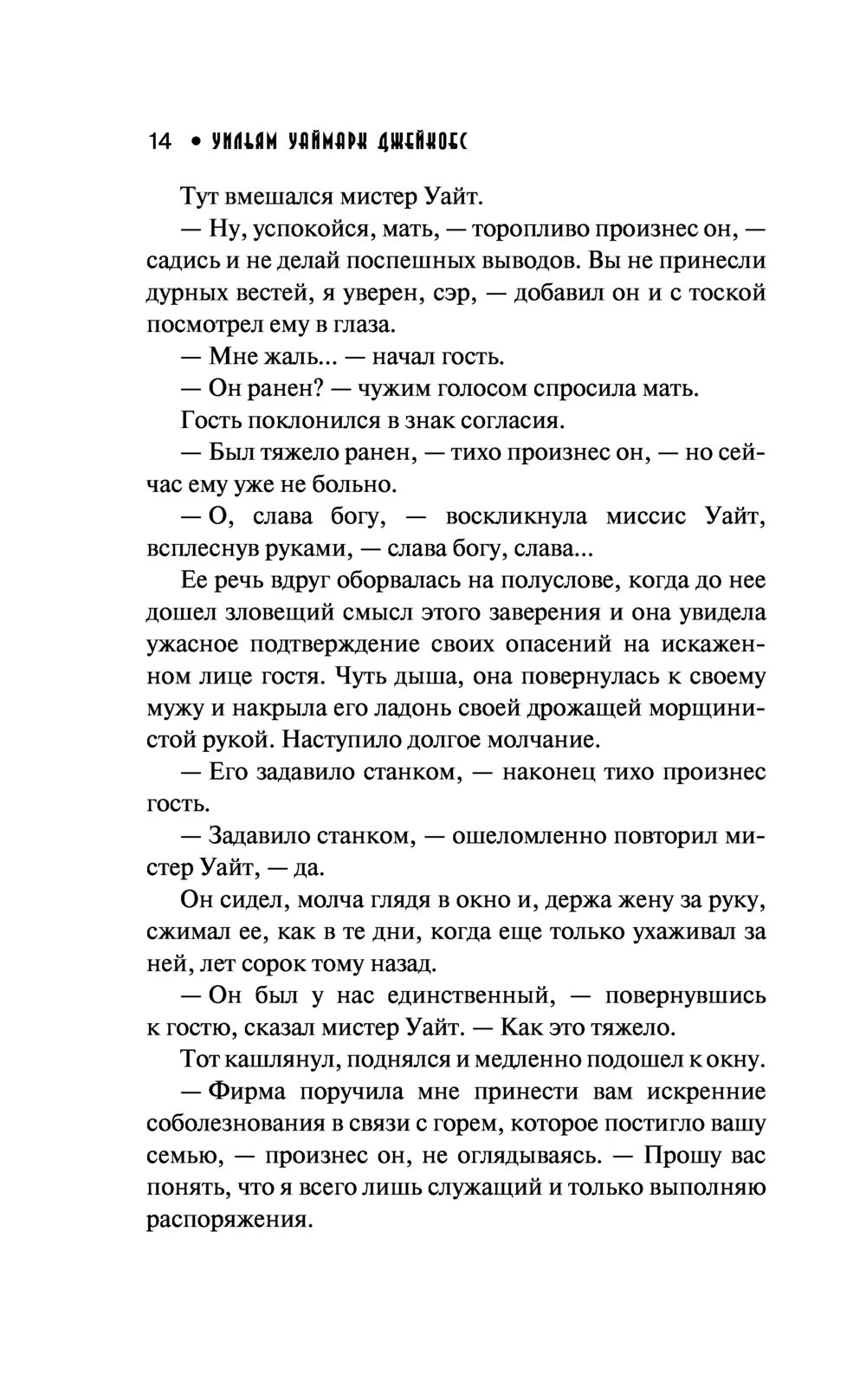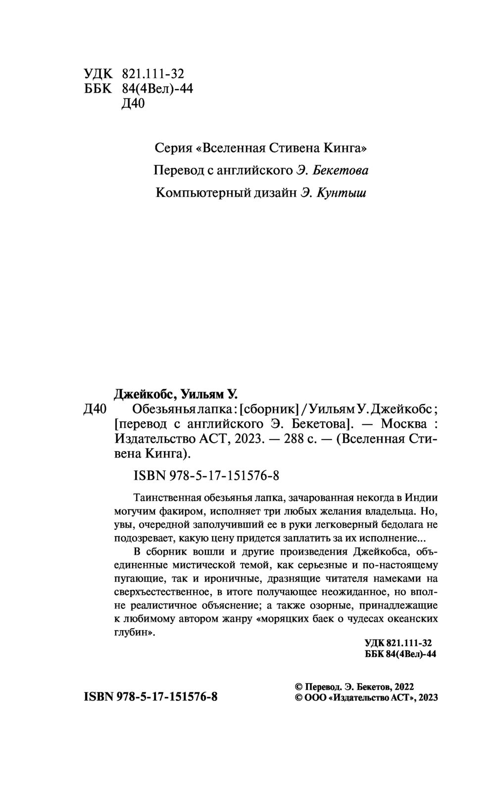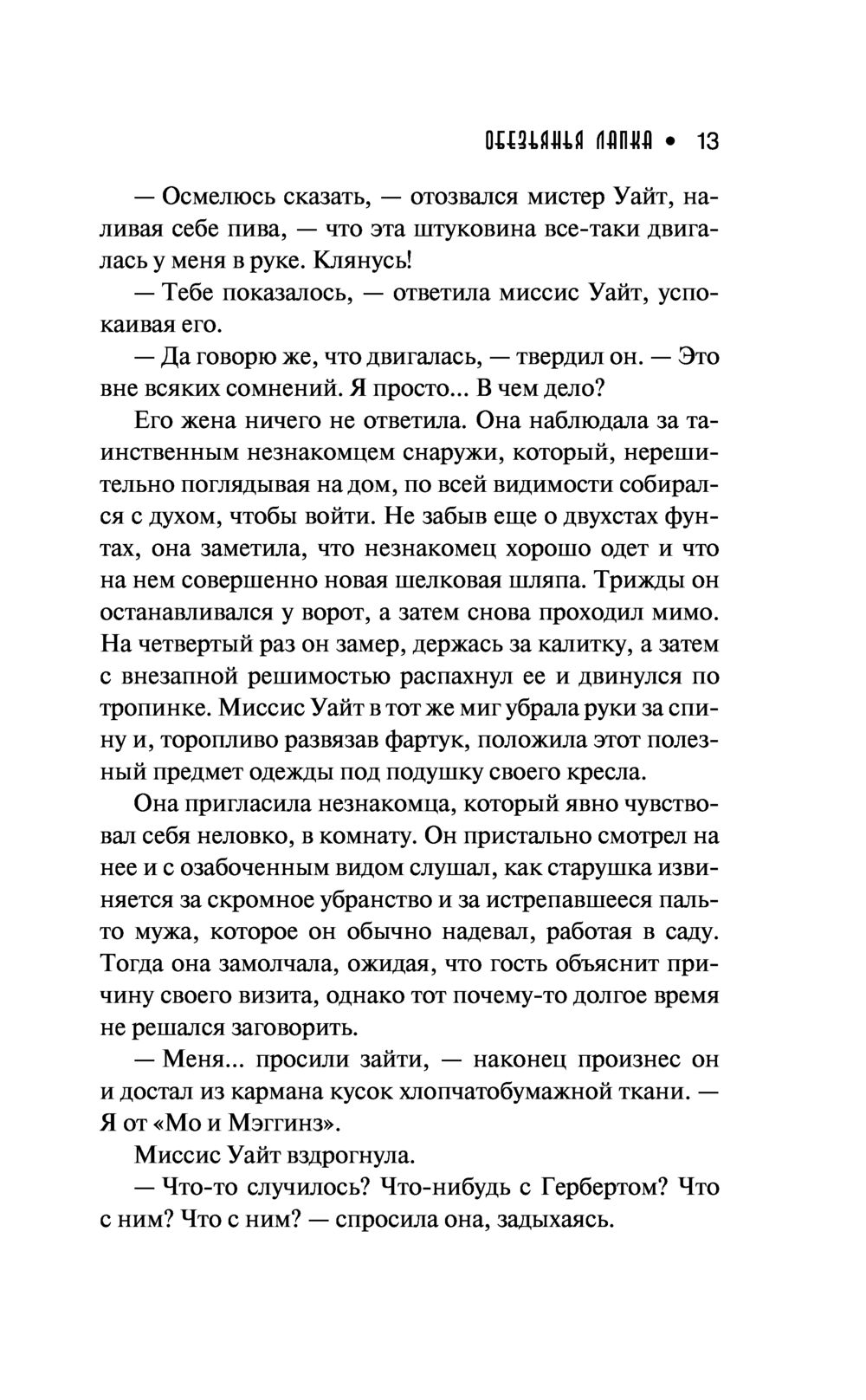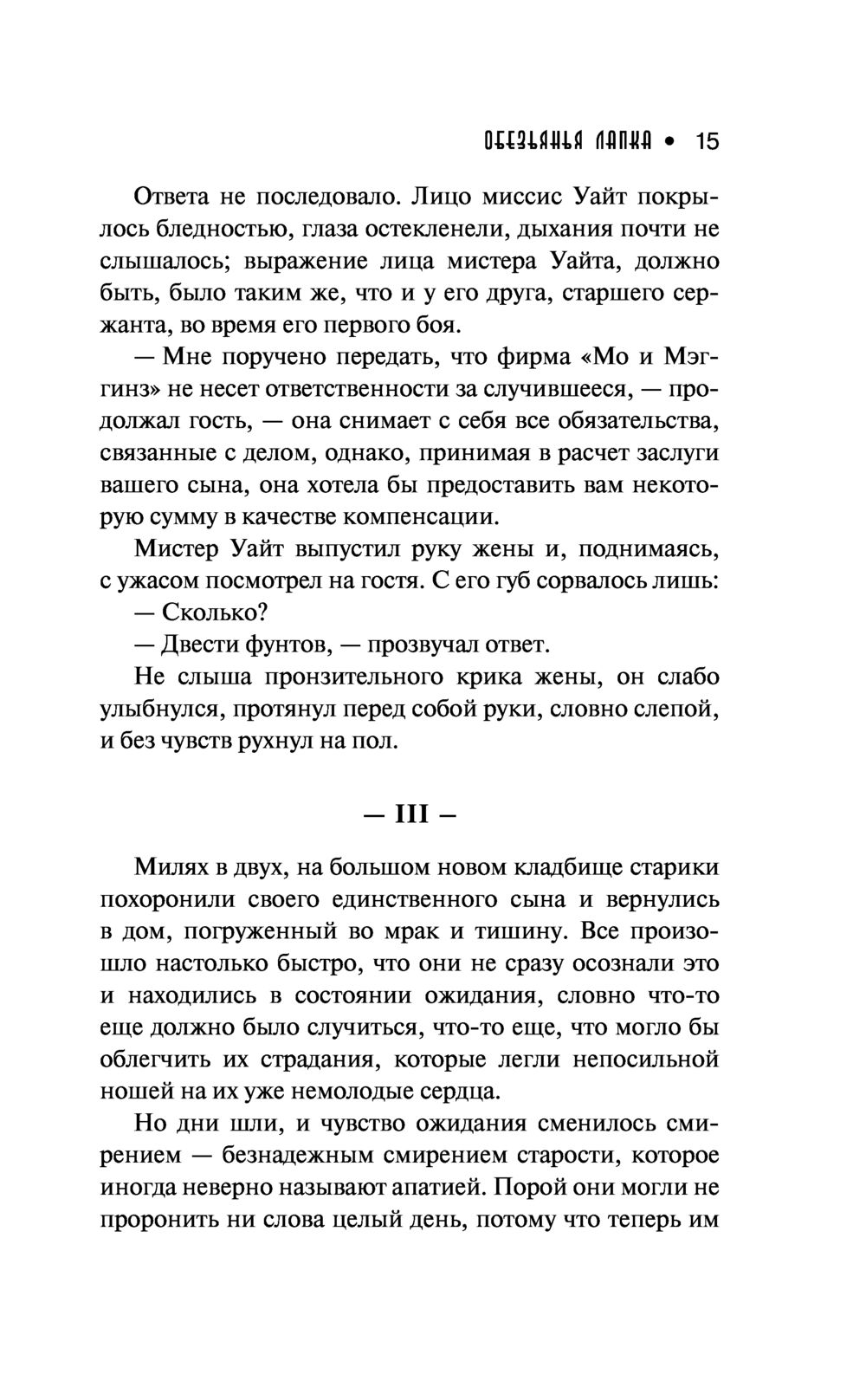 В сборник вошли и другие произведения Джейкобса, объединенные мистической темой, как серьезные и по-настоящему пугающие, так и ироничные, дразнящие читателя намеками на сверхъестественное, в итоге получающее неожиданное, но вполне реалистичное объяснение; а также озорные, принадлежащие к любимому автором жанру "моряцких баек о чудесах океанских глубин".