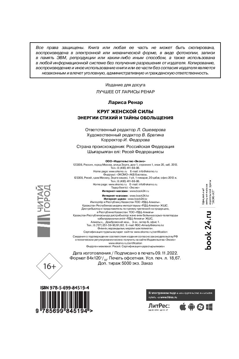 | Изготовитель | ООО «Издательство «Эксмо». РФ, г. Москва, ул. Клары Цеткин, 18, корп. 5 |
