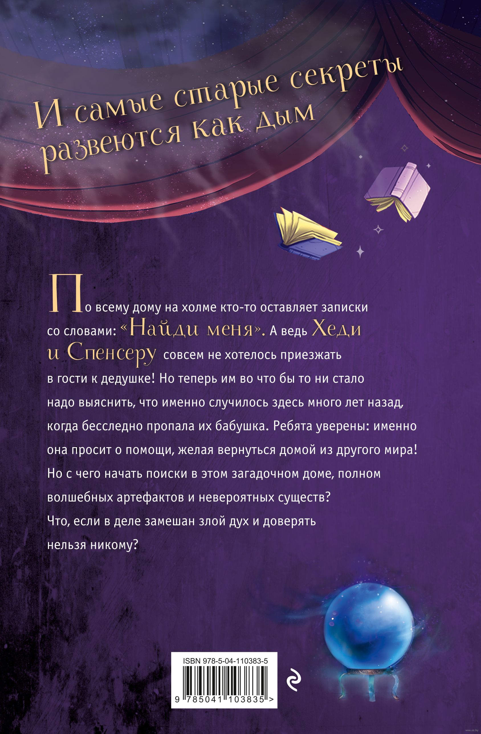 Хеди и Спенсер не очень-то хотели застрять в гостях у дедушки, но родители уехали в экспедицию, и брату с сестрой пришлось смириться. В огромном пыльном особняке, одиноко стоящем на холме, нет интернета, видеоигр и мобильной связи. Зато все двери разного цвета, полно волшебных артефактов и невероятных существ! Но самое невероятное в том, что ребята выяснили: их бабушка пропала много лет назад и теперь стремится вернуться из другого мира! Она оставляет по всему дома записки всего лишь с двумя словами: "Найди меня". Хеди и Спенсеру предстоит выяснить, что же случилось на самом деле много лет назад. Возможно, замешан злой дух, но как ребятам отличить правду от иллюзии и помочь бабушке вернуться домой?!
