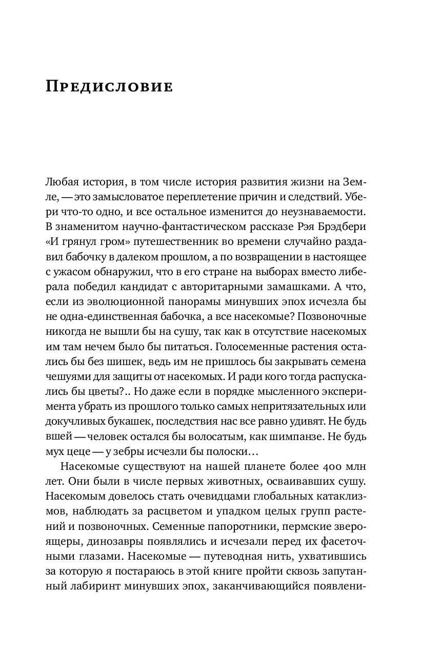 "Любая история, в том числе история развития жизни на Земле, – это замысловатое переплетение причин и следствий. Убери что-то одно, и все остальное изменится до неузнаваемости" – с этих слов и знаменитого примера с бабочкой из рассказа Рэя Брэдбери палеоэнтомолог Александр Храмов начинает свой удивительный рассказ о шестиногих хозяевах планеты.