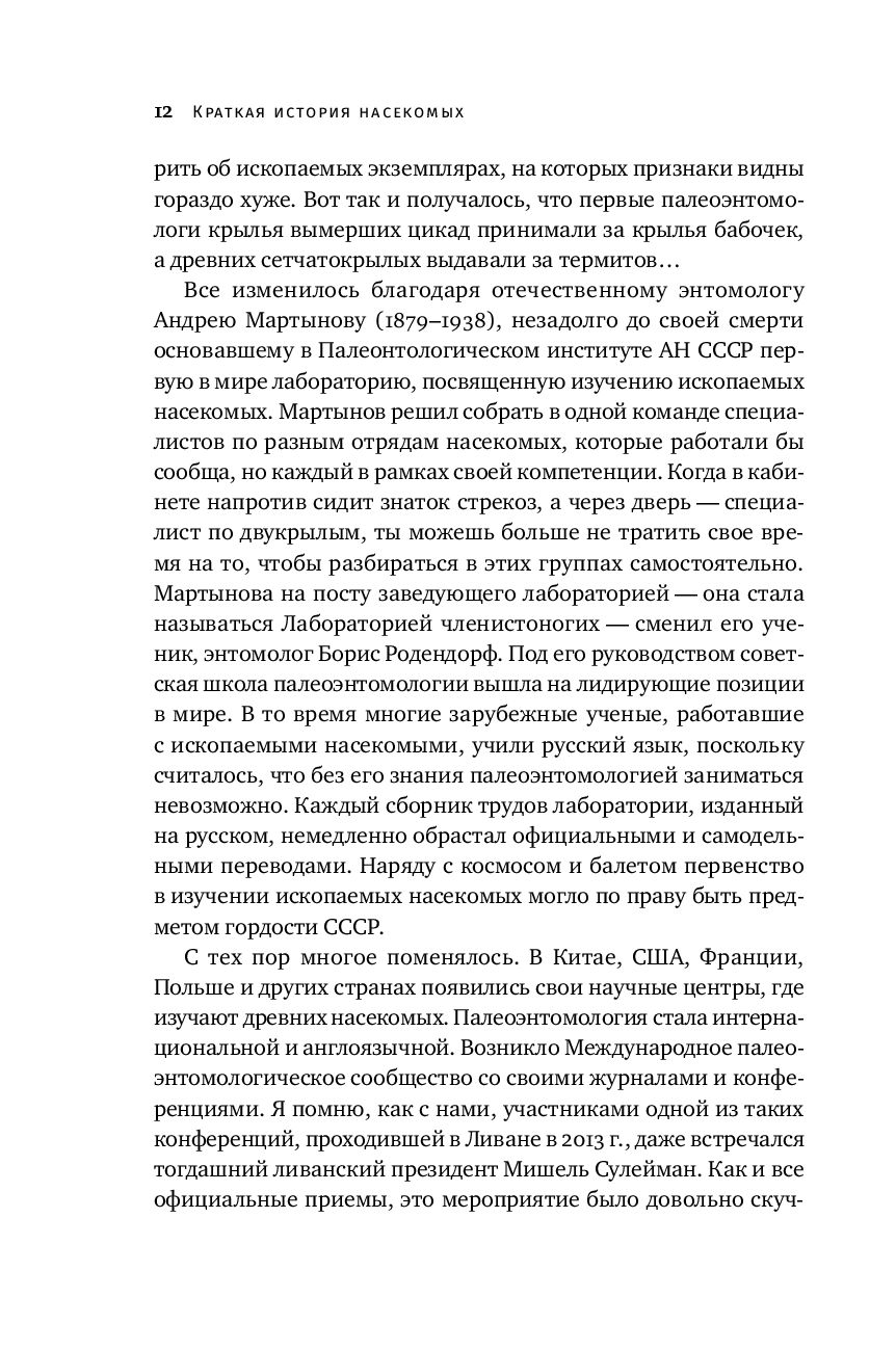 Да, о насекомых есть немало книг, но эта первая, которая рассказывает о них с точки зрения их становления и исторического развития. Палеоэнтомология – не математика, многое в этой стремительно развивающейся науке строится на гипотезах и интерпретациях, но благодаря появлению все новых данных и исследовательских методов ученые могут поделиться с нами захватывающими открытиями и догадками, добавляя очередные фрагменты в картину мира. И автор делает это увлеченно и талантливо.