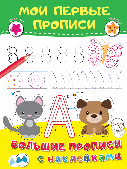 "Мои первые прописи" – это универсальный тренажёр с яркими наклейками для малышей. Ребёнок научится писать печатные буквы, цифры, потренирует пальчики, разовьёт мелкую моторику, внимание, мышление и творческие способности. Весёлые задания на самые разные темы дополнены забавными наклейками. Заниматься с такой книгой не только полезно, но и очень весело!