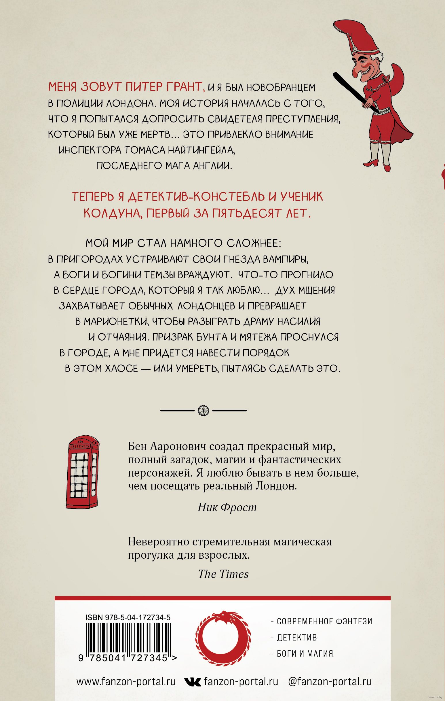 Мой мир стал намного сложнее: в пригородах устраивают свои гнезда вампиры, боги и боги Темзы враждуют, а в сердце города, который я так люблю, что-то прогнило... Злонамеренный мстительный дух захватывает обычных лондонцев и превращает в марионетки, чтобы разыграть драму насилия и отчаяния. Призрак бунта и мятежа проснулся в городе, а мне придется навести порядок в этом хаосе – или умереть, пытаясь сделать это.