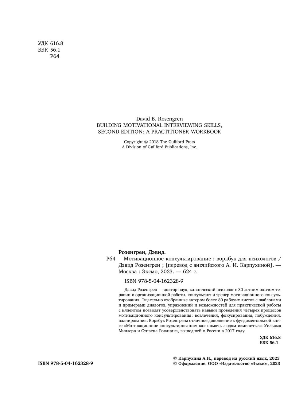 Воркбук Розенгрена отличное дополнение к фундаментальной книге "Мотивационное консультирование: как помочь людям измениться" Уильяма Миллера и Стивена Роллника, вышедшей в России в 2017 году.