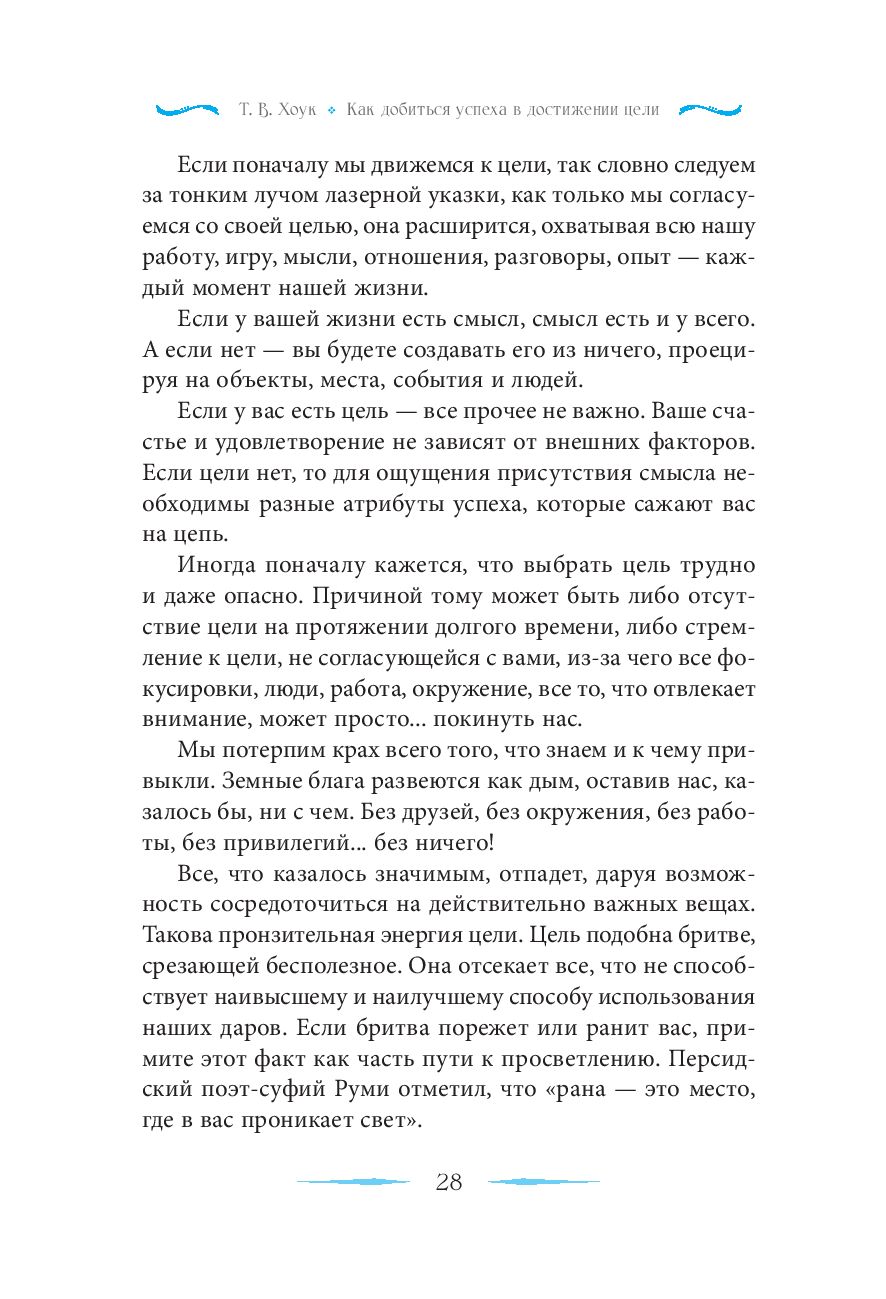 Т. В. Хоук, известный продюсер голливудских фильмов, предлагает читателю установить другую точку отсчета для старта новой жизни: начать путь к самосовершенствованию с изучения своих личностных качеств и правильной постановки цели. Он призывает отбросить привычное представление об атрибутах успеха, обратив внимание на духовные аспекты преодоления себя – например, состраданию и помощи другим людям.
