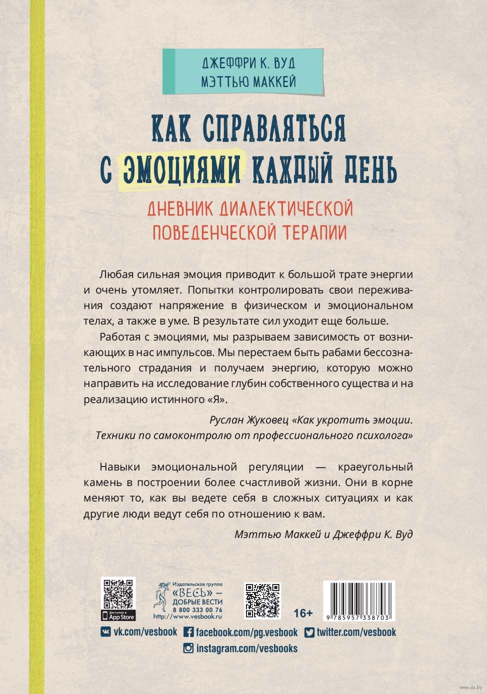 Перед вами книга, основанная на принципах диалектической поведенческой терапии (ДПТ) – популярного и весьма эффективного направления психологии. Цель ДПТ – борьба с проблемами, вызванными слишком интенсивной эмоциональной реакцией на стресс. Она описывает способы эмоциональной регуляции, а также содержит дневник, рассчитанный на 52 недели ежедневной практики. Вы можете начать вести его уже с первого дня чтения, постепенно вводя новые изученные навыки ДПТ и самостоятельно оценивая их эффективность.
