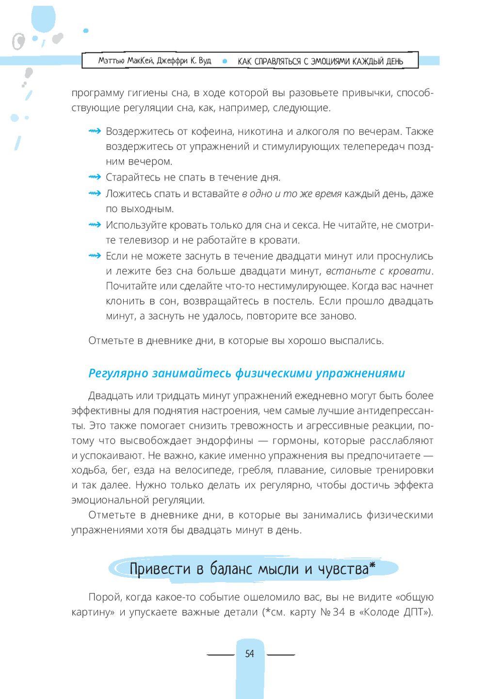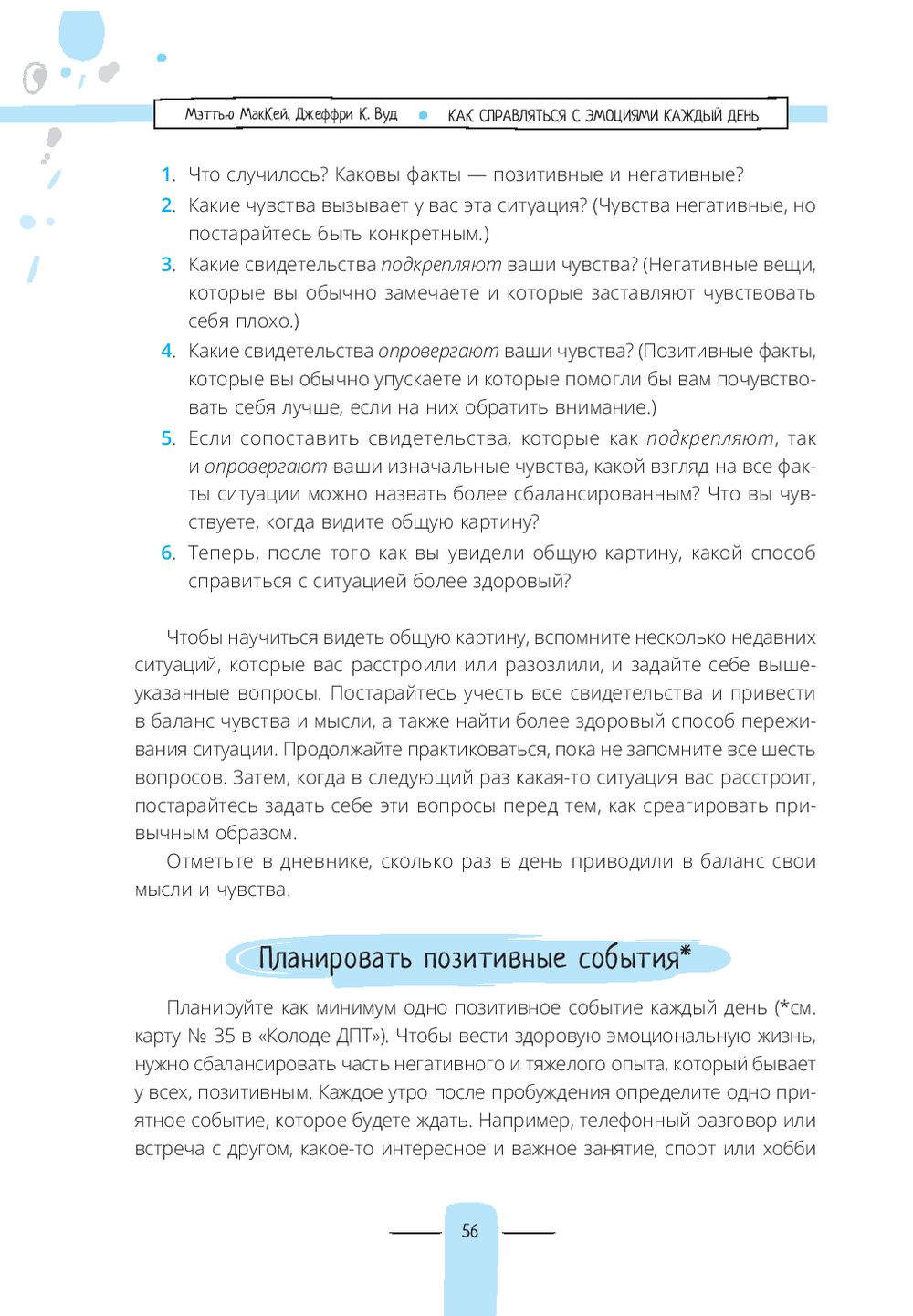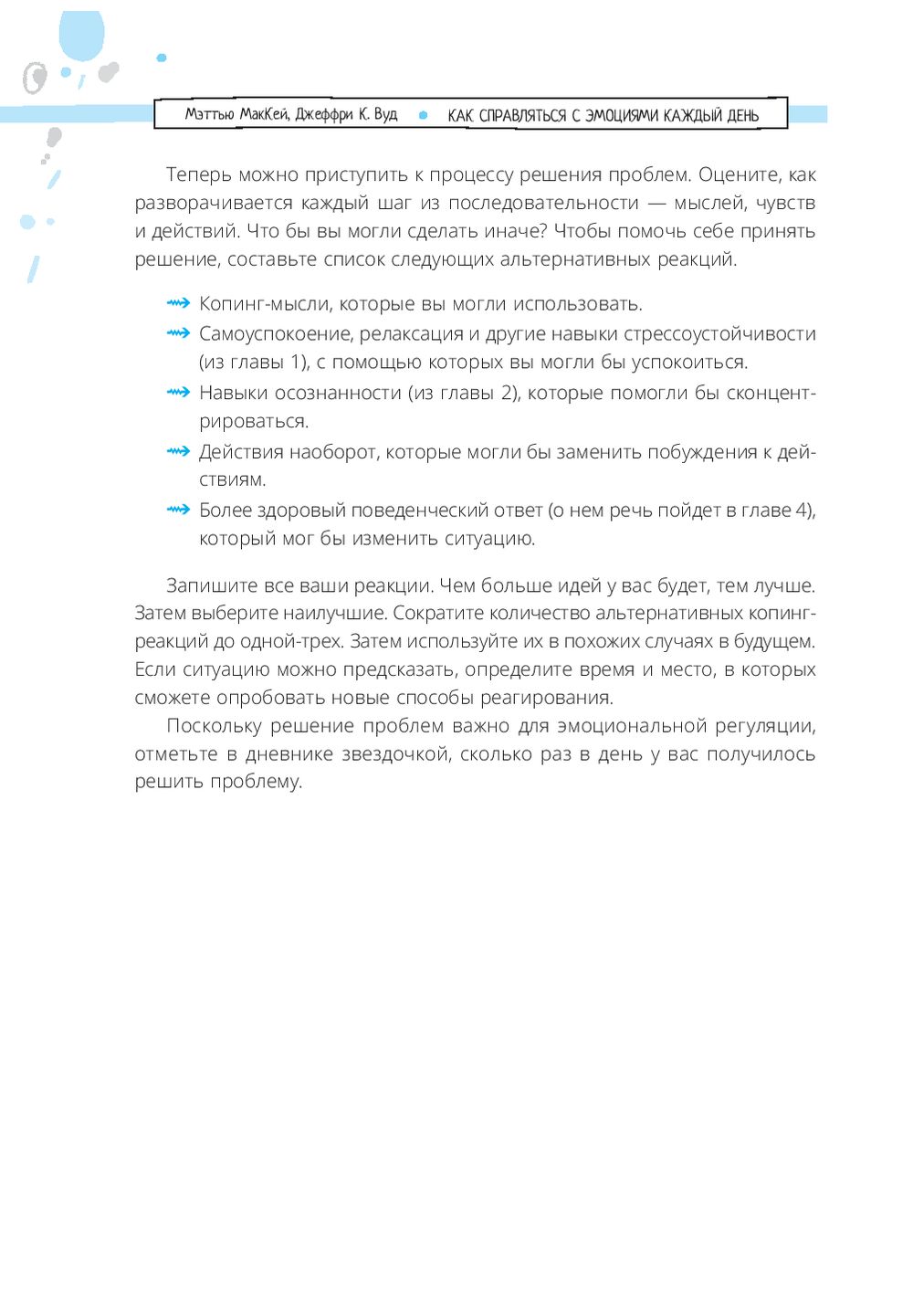 "Очень часто чувство – это всего лишь чувство, а не реальность. Иногда эмоции может вызвать случайная мысль, а иногда – ситуация, лишь слегка напоминающая о некоем событии из прошлого. Порой люди делают вещи, которые нас расстраивают, а порой разочаровывают нас. Случаются ситуации приятные, а иногда вызывающие раздражение, скуку и эмоциональную боль. Но очевидно, что нездоровая реакция на каждый эмоциональный опыт может быть вредной – как для вас, так и для вашего окружения. ДПТ успешно научила тысячи людей справляться с проблемами, связанными с сильными эмоциями. Однако она будет эффективна только в том случае, если вы практикуете навыки каждый день, а не просто прочтете о них".