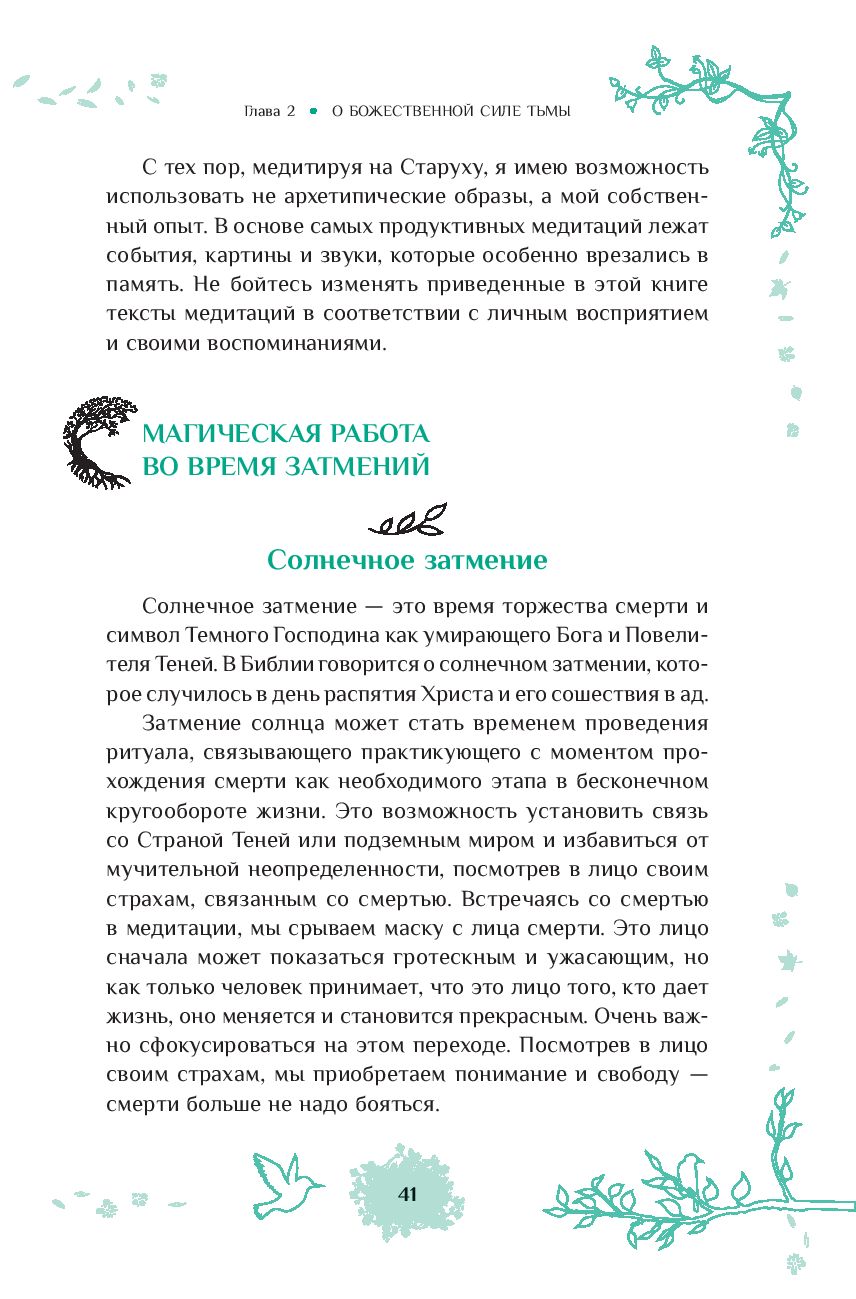 После прочтения этой книги и освоения практик вы поймете, что Тьма – это необходимая часть жизни, как ночь, которая всегда сменяет день. Ее не нужно бояться. Вы встретитесь лицом к лицу с собственными страхами и опасениями и одержите над ними верх. Эта победа придаст уверенности в себе и поможет более полноценно проживать каждый свой день.