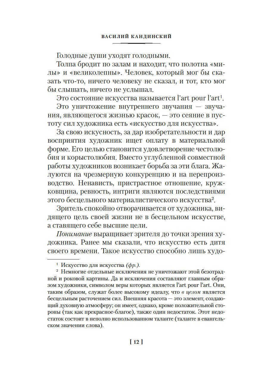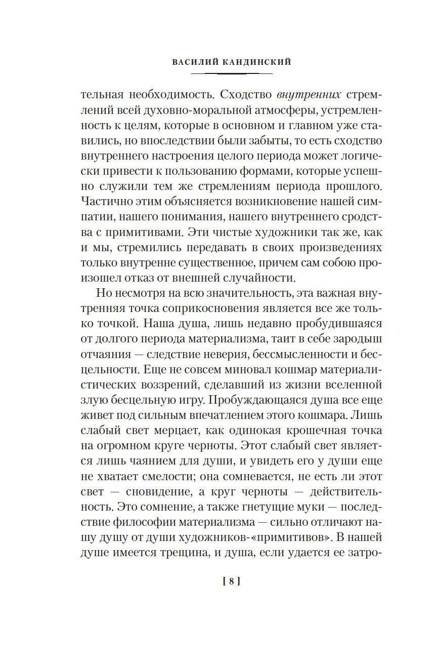 "Цвет – это клавиш; глаз – молоточек; душа – многострунный рояль. Художник есть рука, которая посредством того или иного клавиша целесообразно приводит в вибрацию человеческую душу", – писал Василий Кандинский в своем программном философском сочинении "О духовном в искусстве", увидевшем свет в 1910 году. Выпускник юридического факультета Московского университета, он принял решение стать художником в последнем десятилетии XIX века. В это время радикальных экспериментов и рождения искусства нового столетия Василию Кандинскому суждено было завоевать всемирную славу выдающегося теоретика и практика авангардной живописи. "О духовном в искусстве", "Текст художника. Ступени", "Точка и линия на плоскости" – эти труды, в которых Кандинский формулирует теоретические предпосылки собственного творчества и абстракционизма в целом, по сей день остаются одним из важнейших ключей к пониманию искусства XX века.