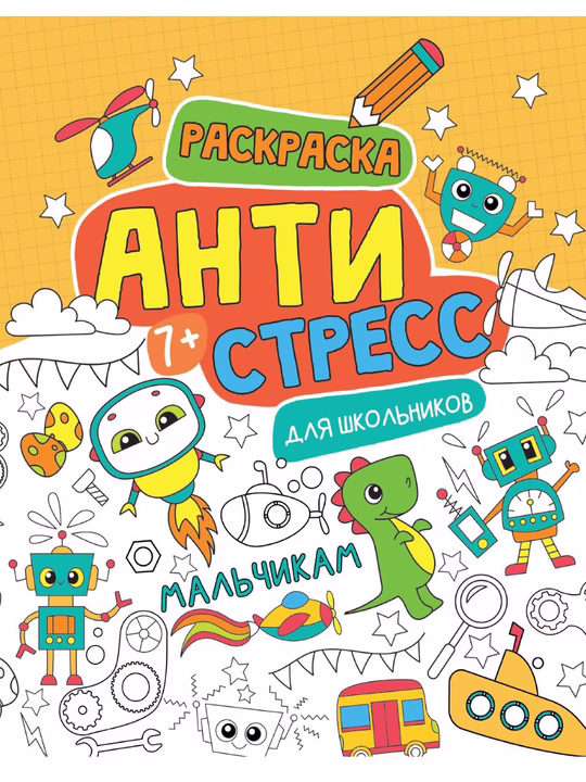В серию "Раскраска-антистресс для школьников" вошли две 48 страничные брошюры. В обеих, в зависимости от предназначения – мальчикам или девочкам, собраны сложные тематические картинки с множеством элементов.
