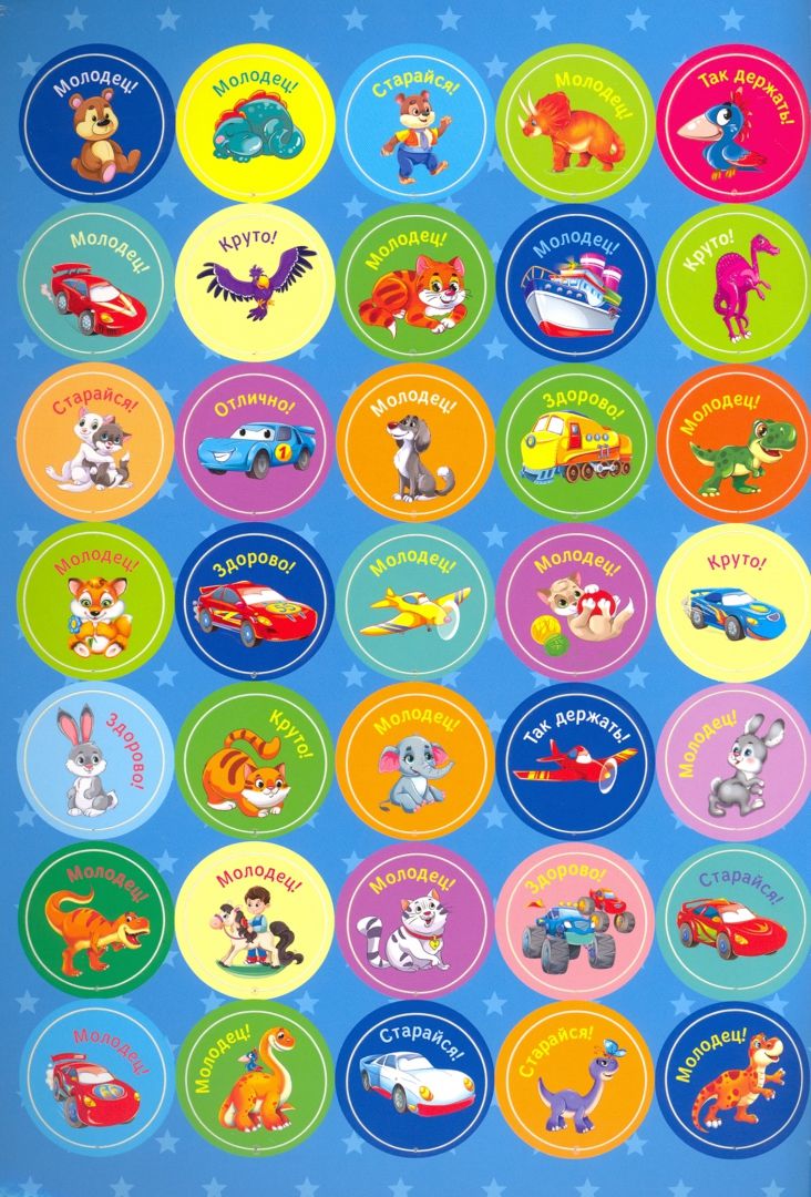 Для детей поощрение – лучший стимул к успешному обучению. Эти яркие наклейки помогут вам в игровой форме похвалить ребёнка или подтолкнуть его к более усердной работе.
