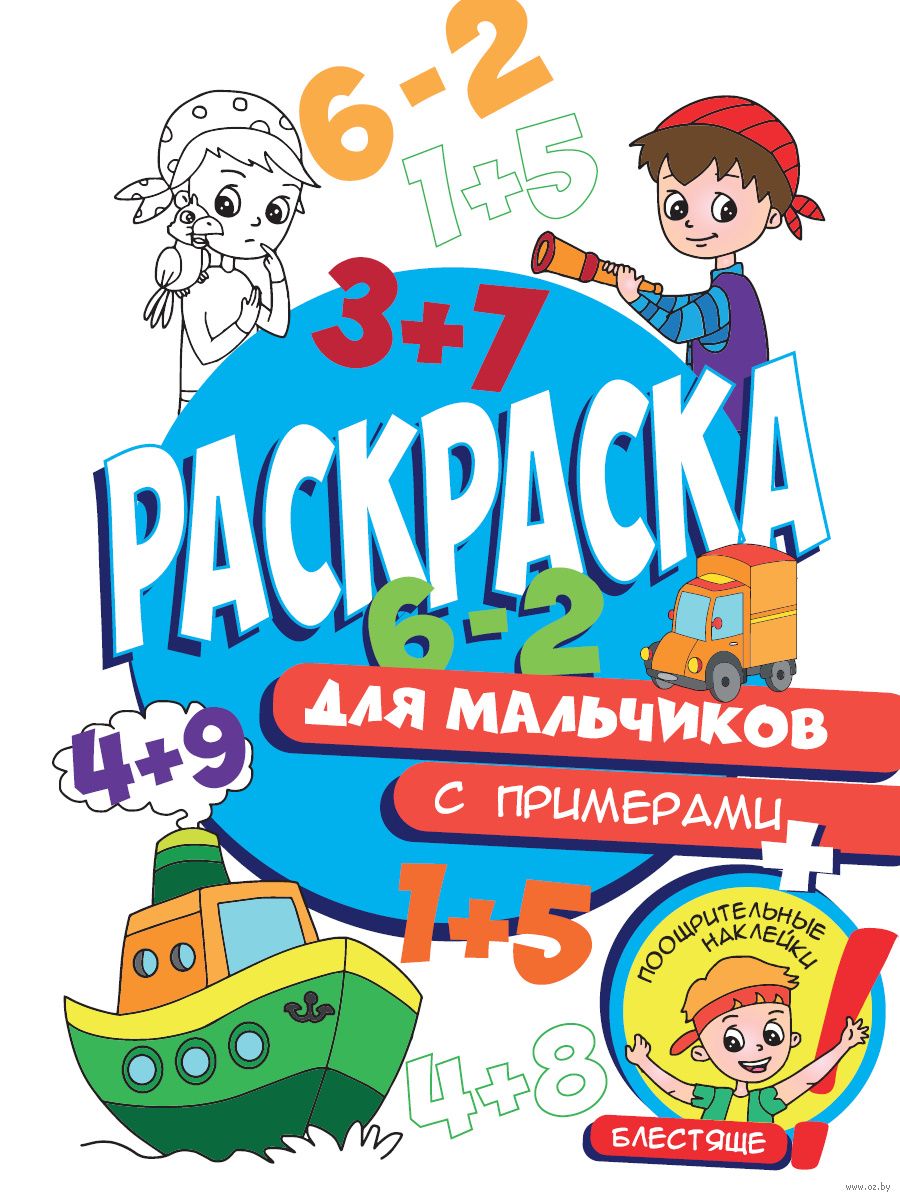 Раскраска с примерами "Для мальчиков". Наклейки, входящие в брошюру, послужат приятным поощрением: раскрасил картинку – похвали себя, вклей наклейку!