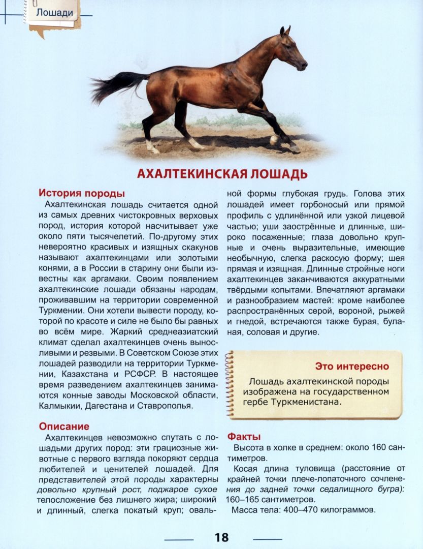 Лошади – одни из самых удивительных животных на Земле, с древних времён одомашненные человеком. Сегодня в мире существует множество пород этих четвероногих красавцев. О наиболее известных из них, а также о диких лошадях вы узнаете из этой небольшой энциклопедии.