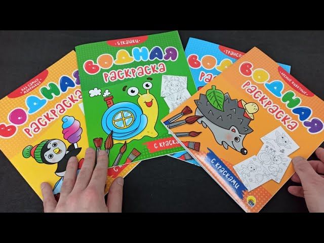 Порадуйте своего ребёнка этими необычными книжками-раскрасками! Краски в них находятся прямо на страничках с картинкой для раскрашивания! Малыш может раскрашивать рисунки как кисточкой, так и пальчиками.